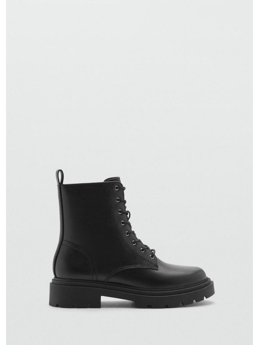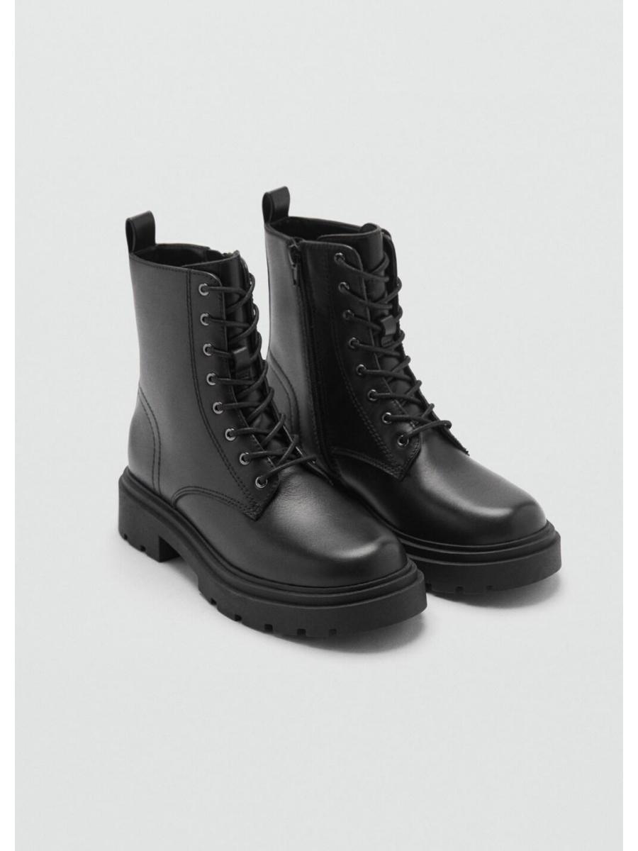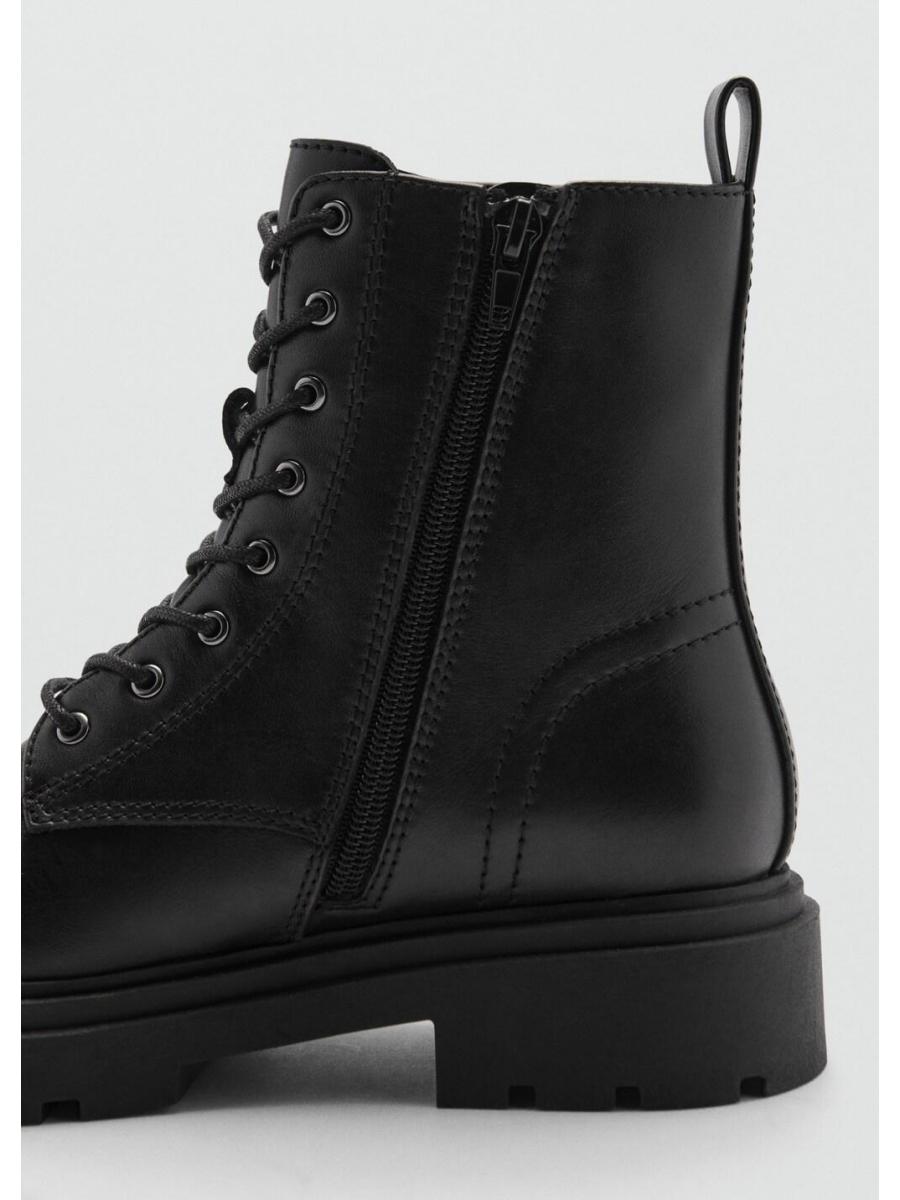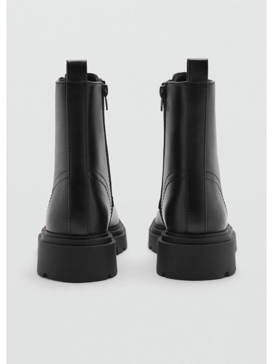 Vuelta a clase. Corte de piel. Punta redonda. Suela track. Cordones decorativos. Cierre de cremallera