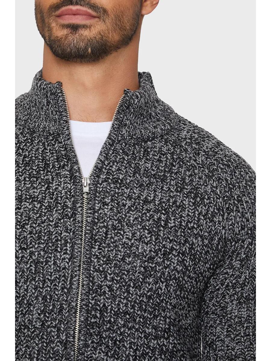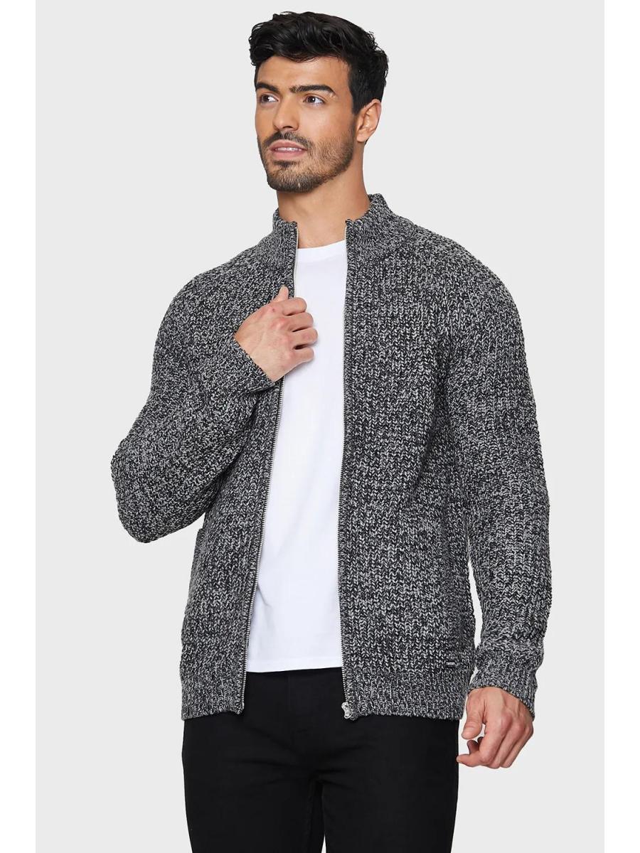 Refresh your knitwear with this zip through, knitted cardigan from Threadbare. It features a textured knit on the body and sleeves, two side pockets and ribbed funnel neck, cuffs and hem. Ideal for layering. Other colours available.