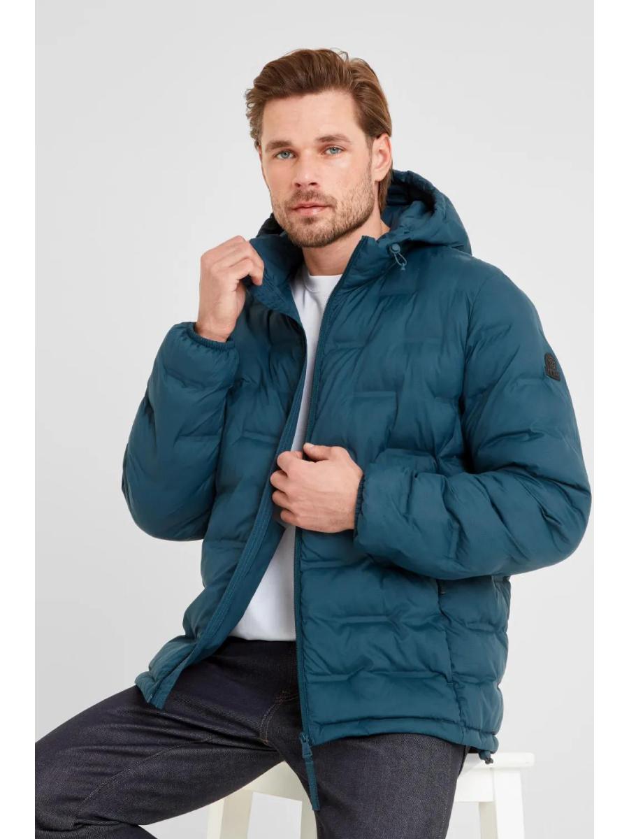 Fender is a premium men's padded jacket featuring unique heat-sealed baffles for superior warmth. Built with insulation from recycled plastic bottles and durable water-repellent finish for weather protection. Includes rubberised toggle adjusters on hood and hem, full zip front, and secure zip pockets. The wind-resistant design and TOG24 badge combine function with style, perfect for everything from commutes to weekend adventures.