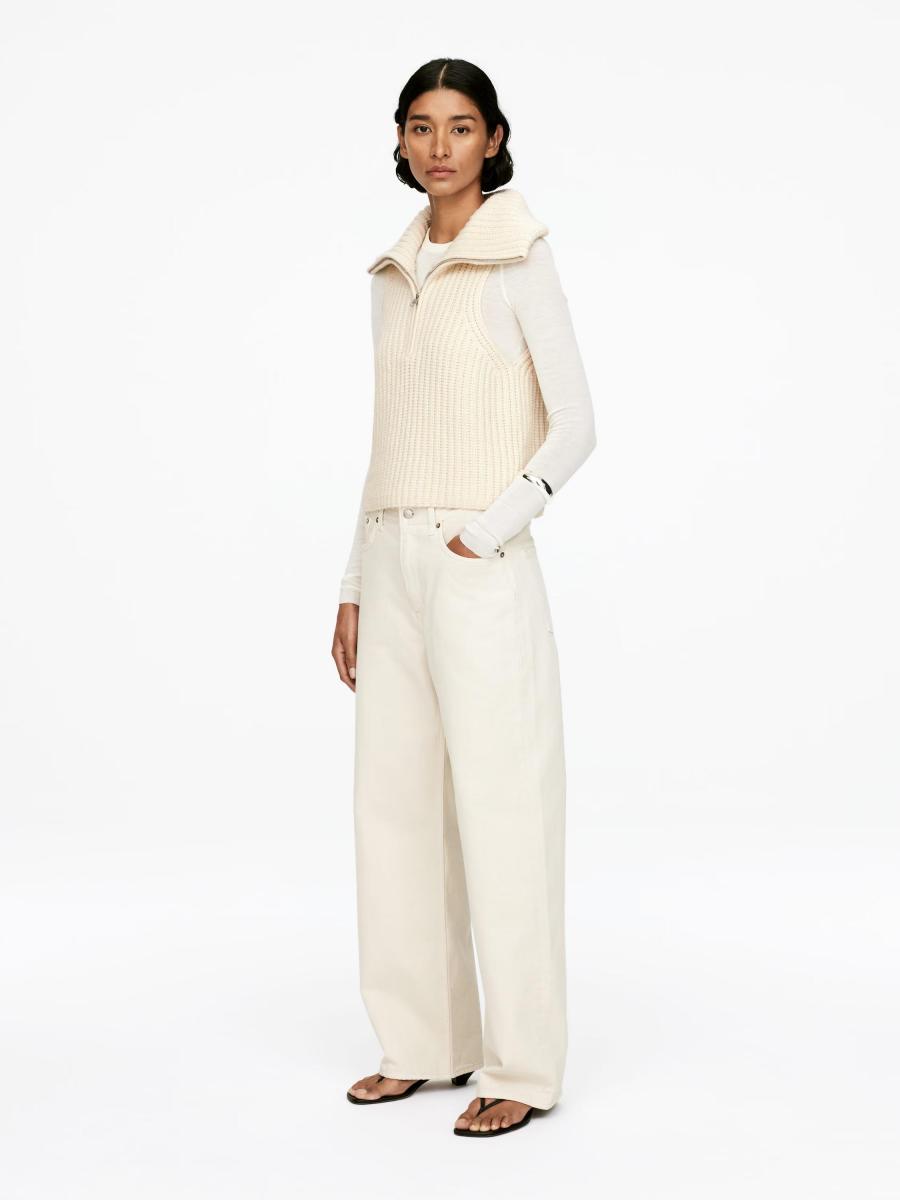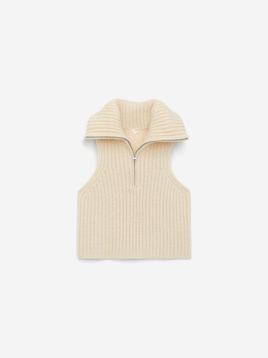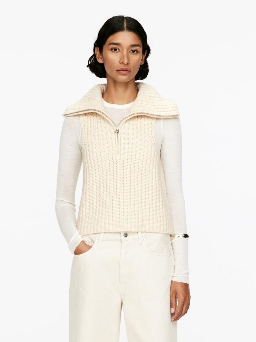 Wool vest with a half-zip opening and an extended collar. Regular fit. This style contains 100% RWS wool (TE-00047206). Products certified to the Responsible Wool Standard (RWS) contain wool fiber from farms independently certified to animal welfare and land management requirements.ARKET/Women's clothes/Women's knitwear/Women's roll-neck jumper