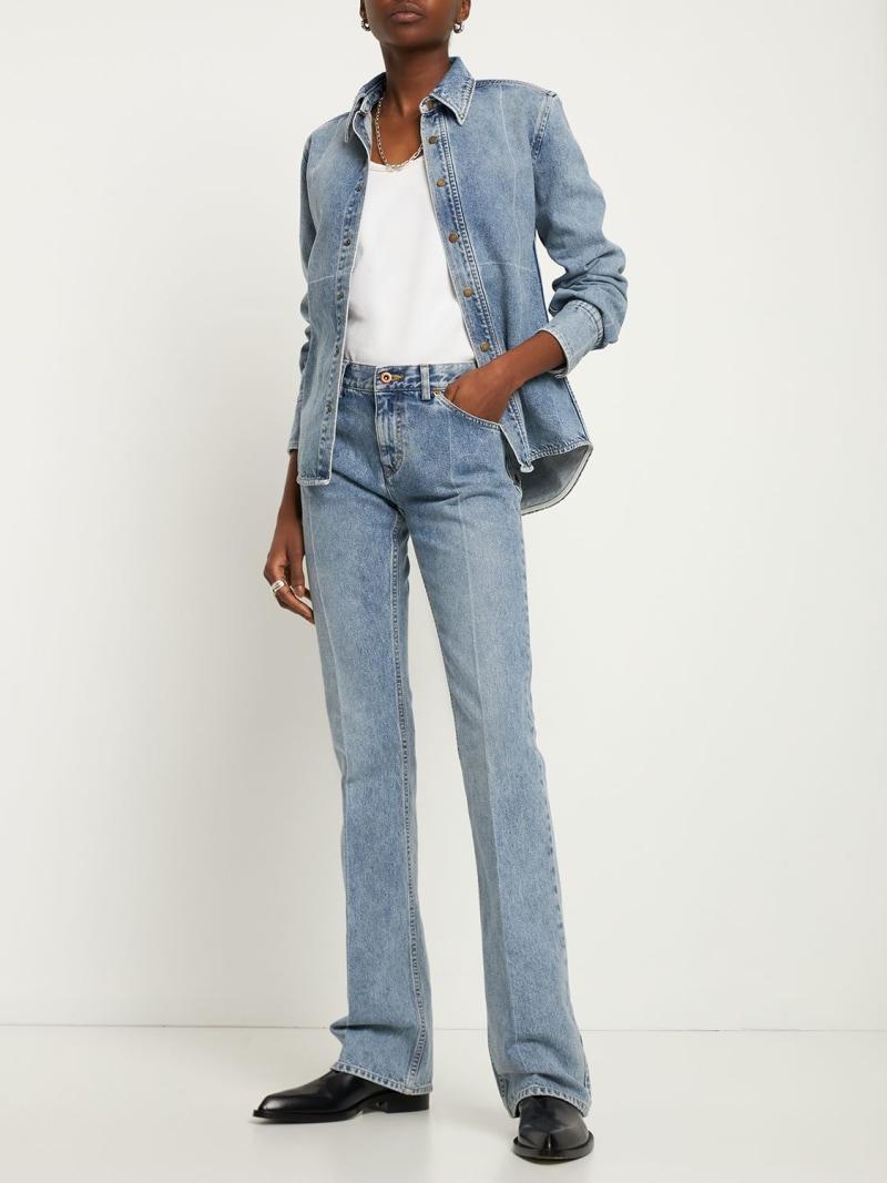 修身低腰牛仔裤 - 蓝色 - 女士 - Petar Petrov - 正面纽扣和隐藏式拉链开合.