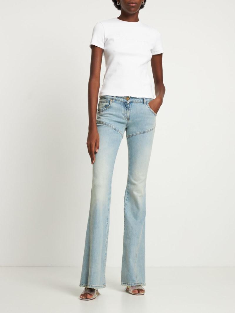 褪色洗水低腰喇叭腿牛仔裤 - 牛仔 - 女士 - Blumarine - 正面纽扣和隐藏式拉链开合.