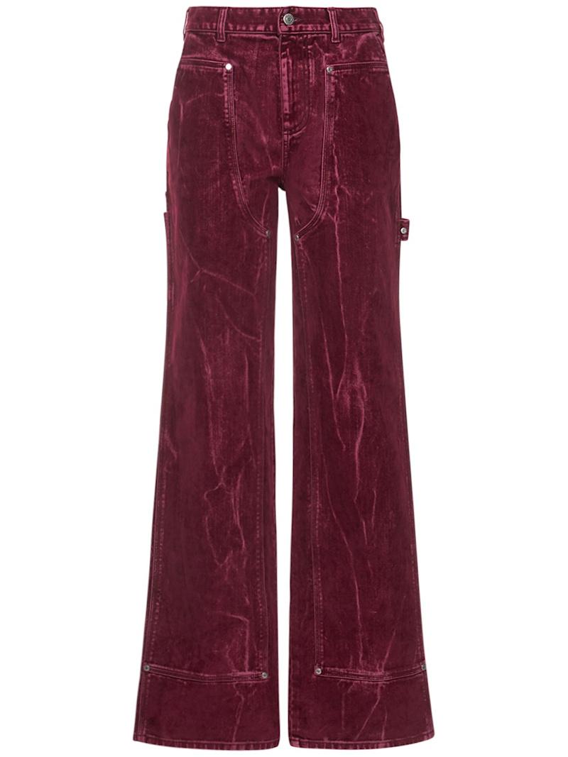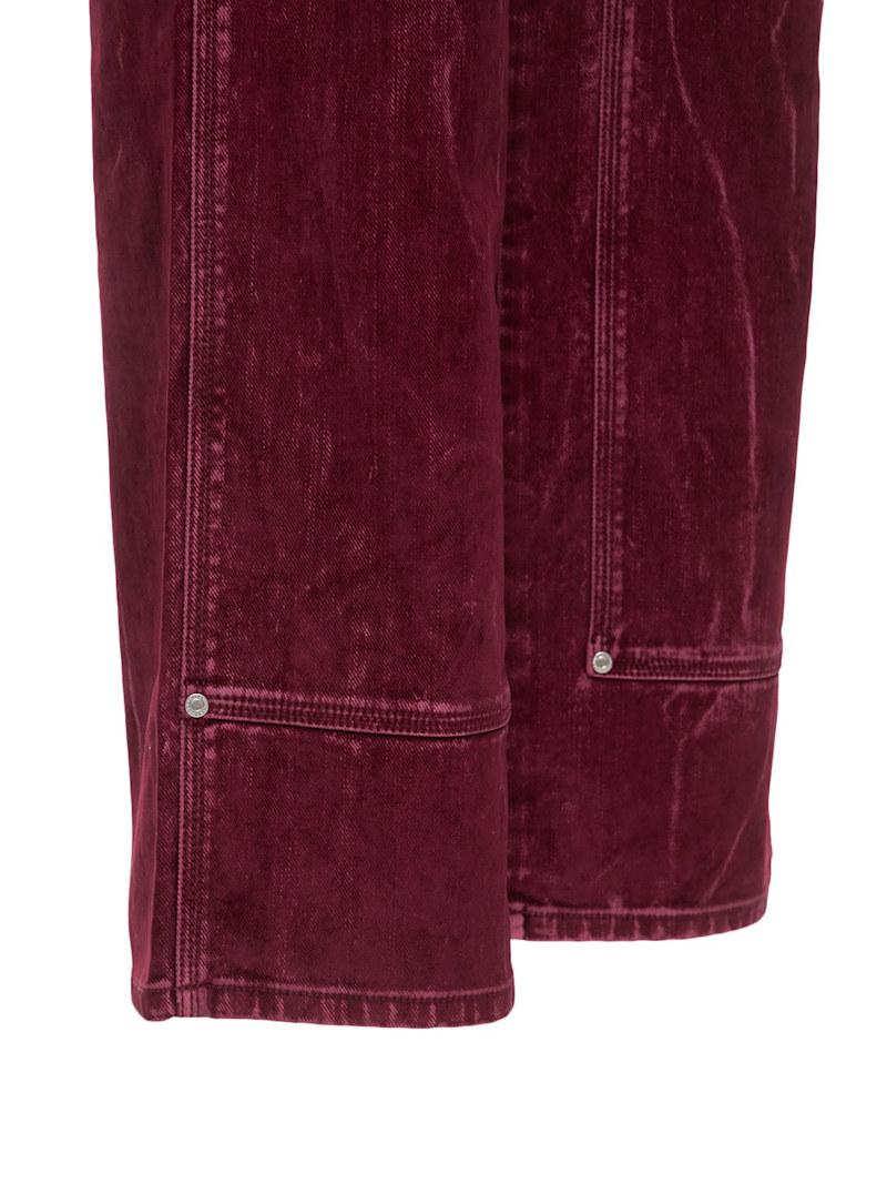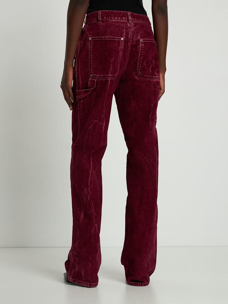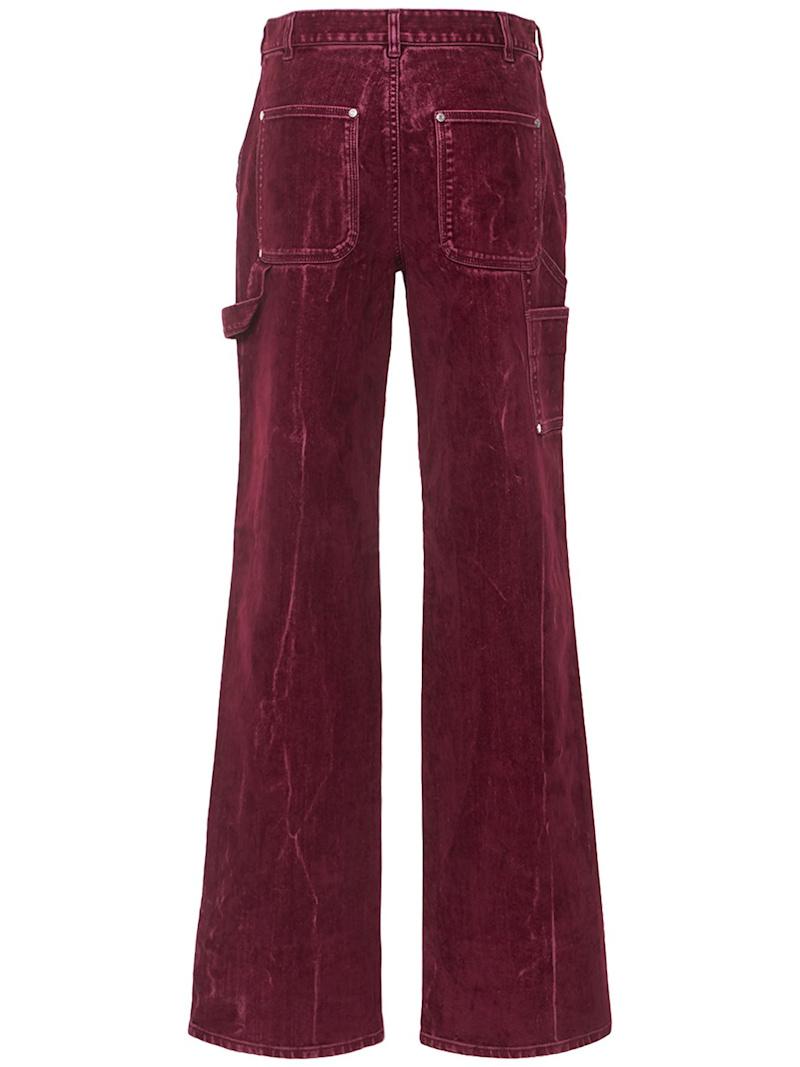天鹅绒直筒牛仔工装裤 - 酒红色 - 女士 - Stella McCartney - 正面纽扣和隐藏式拉链开合.