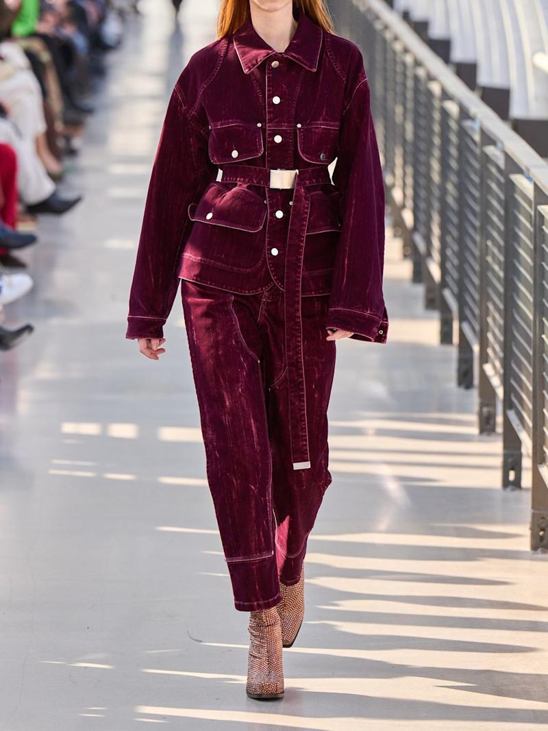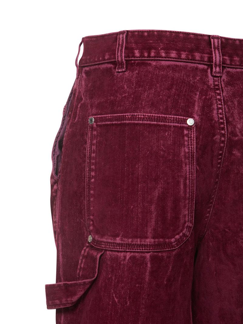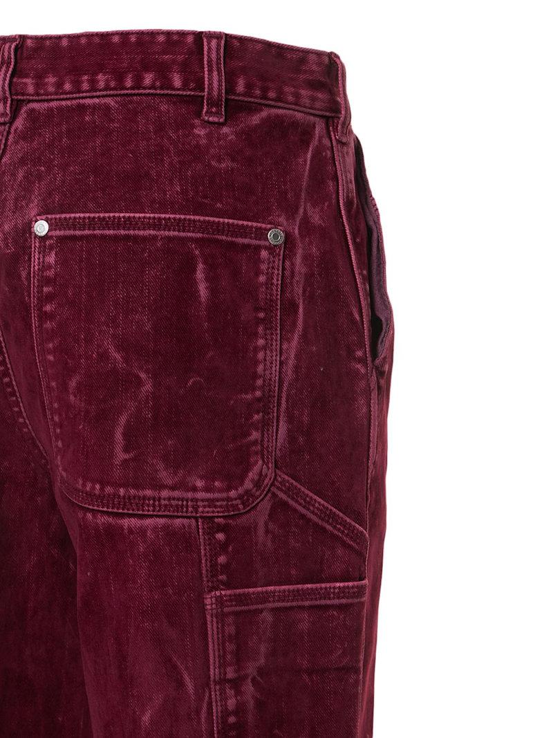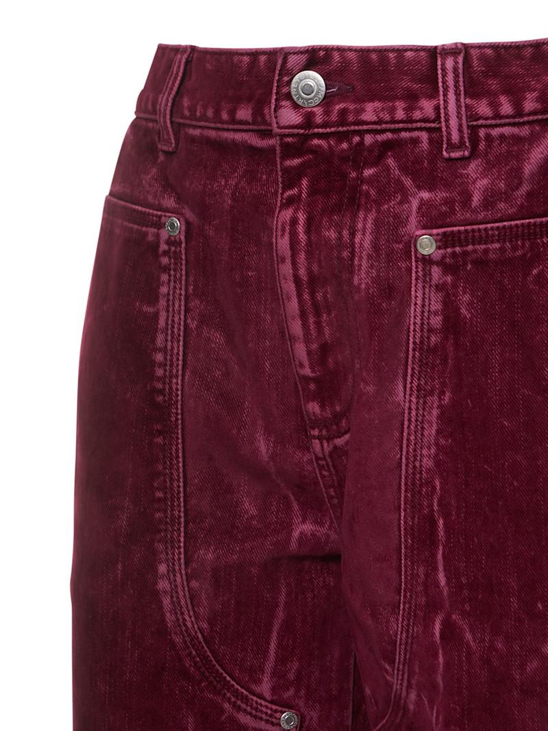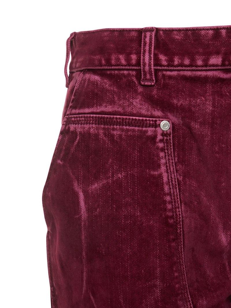 天鹅绒直筒牛仔工装裤 - 酒红色 - 女士 - Stella McCartney - 正面纽扣和隐藏式拉链开合.