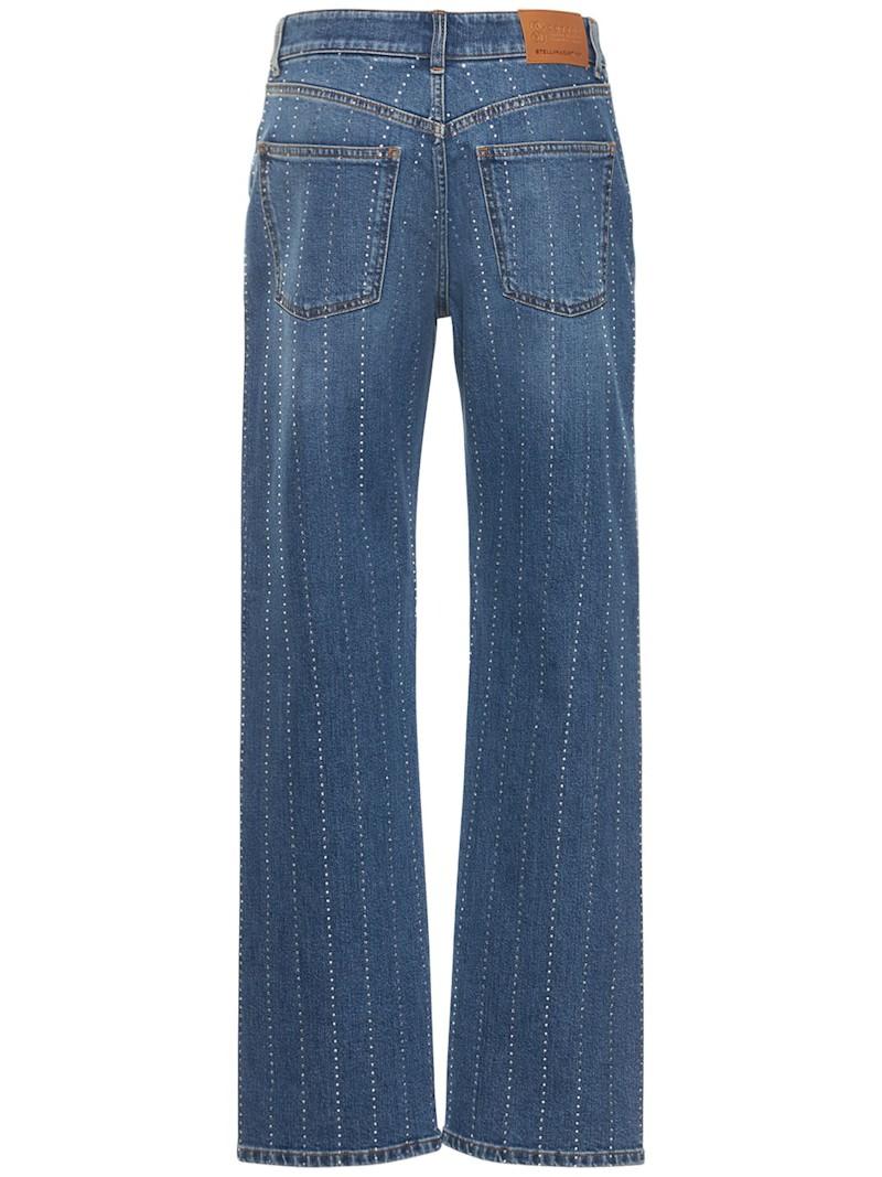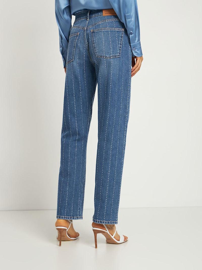条纹直筒棉质牛仔裤 - 牛仔 - 女士 - Stella McCartney - 正面纽扣和隐藏式拉链开合.