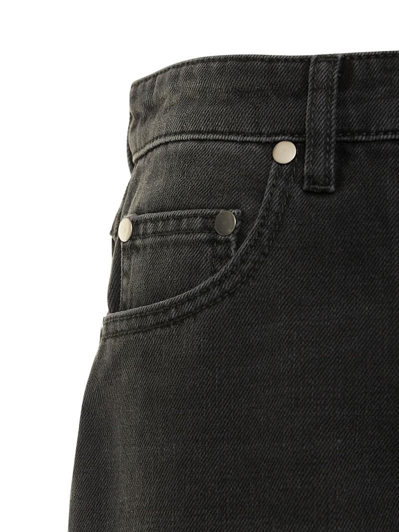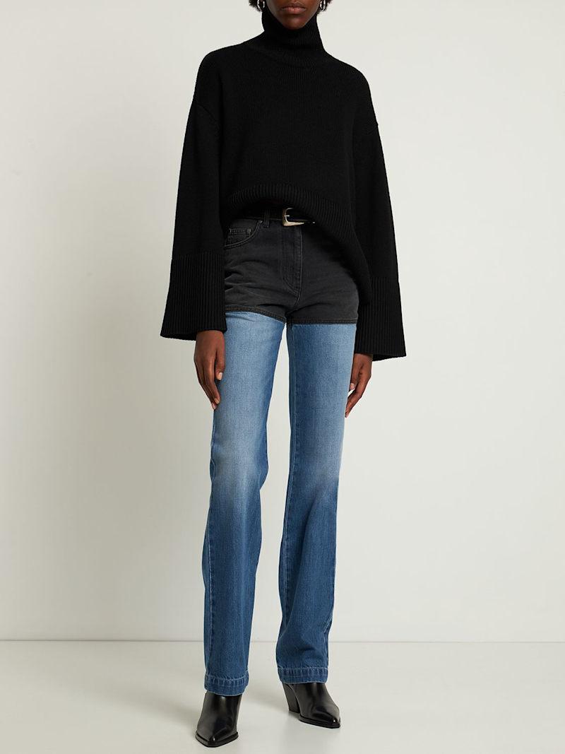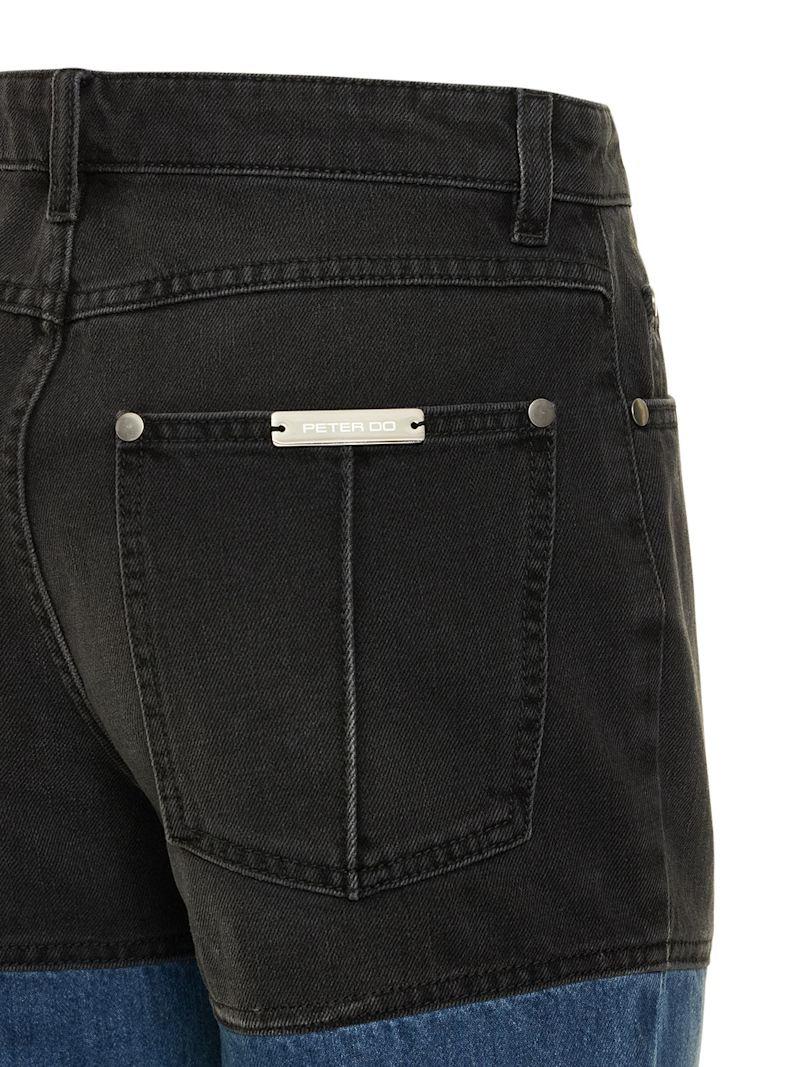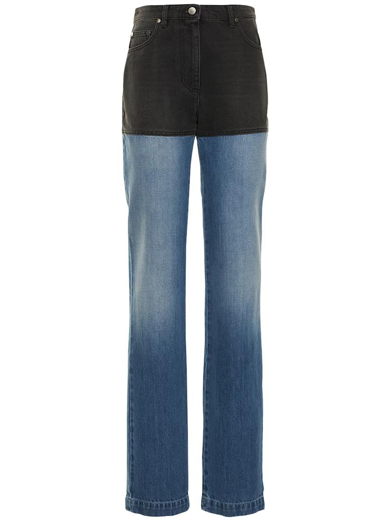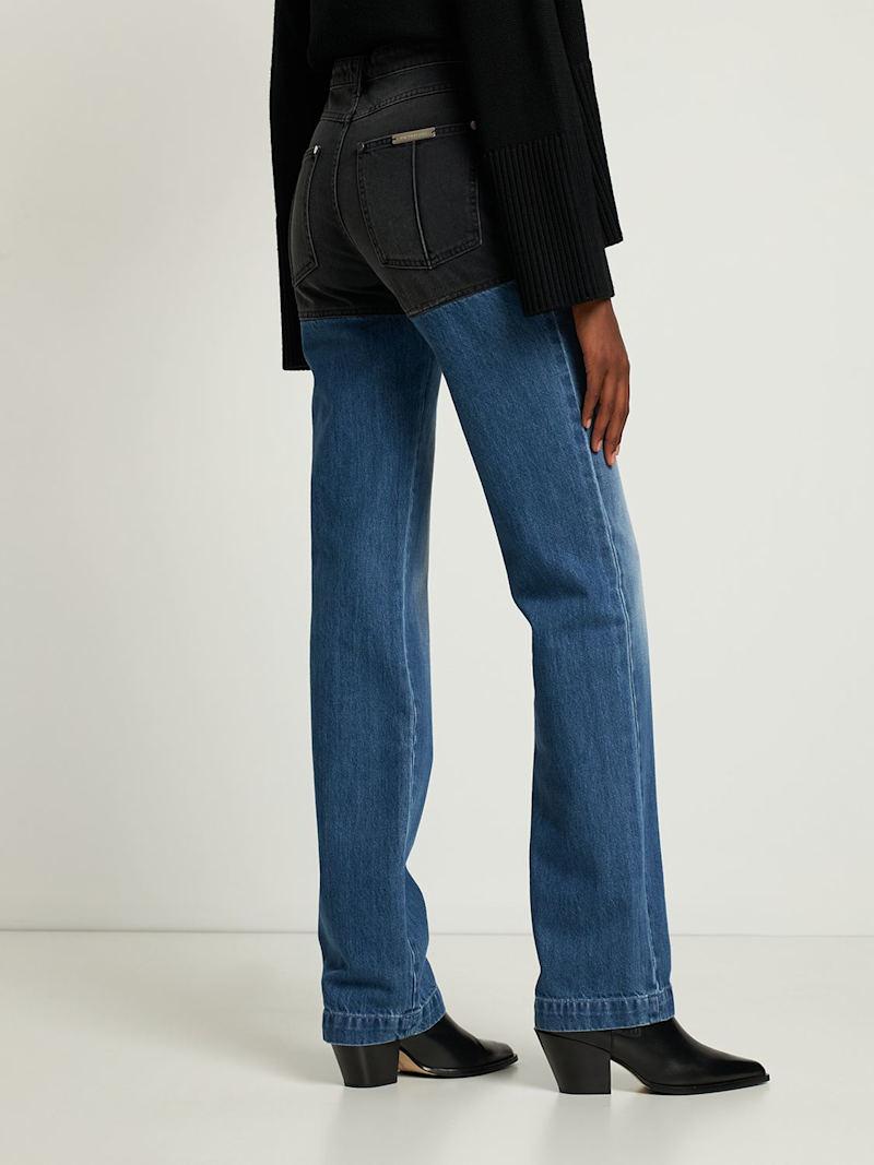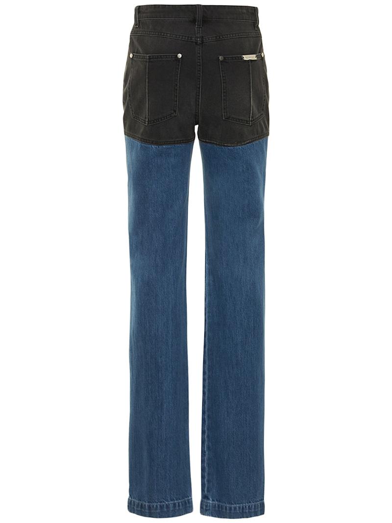 Combination棉质直筒牛仔裤 - Lt Blue/Black - 女士 - Peter Do - 正面纽扣和隐藏式拉链开合.