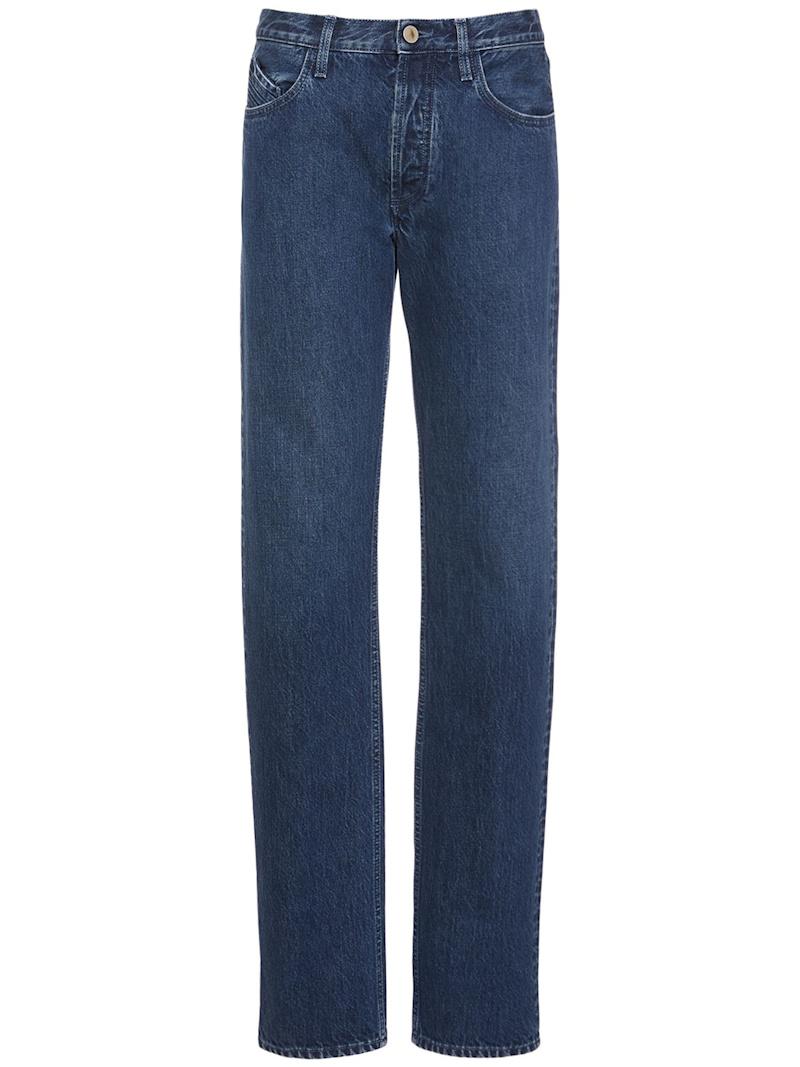 男友版型长款牛仔裤 - 蓝色 - 女士 - The Attico - 正面纽扣和隐藏式拉链开合.