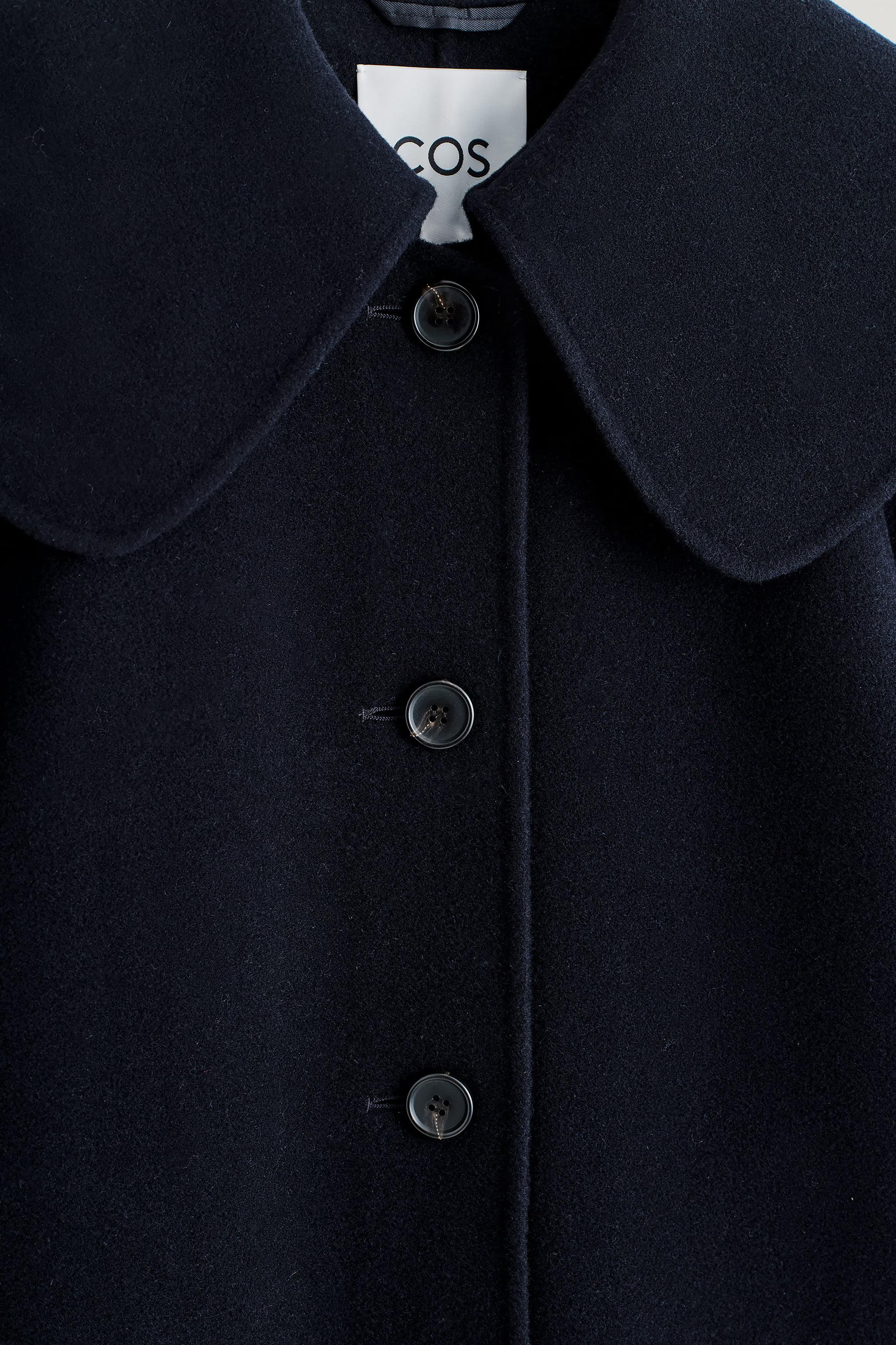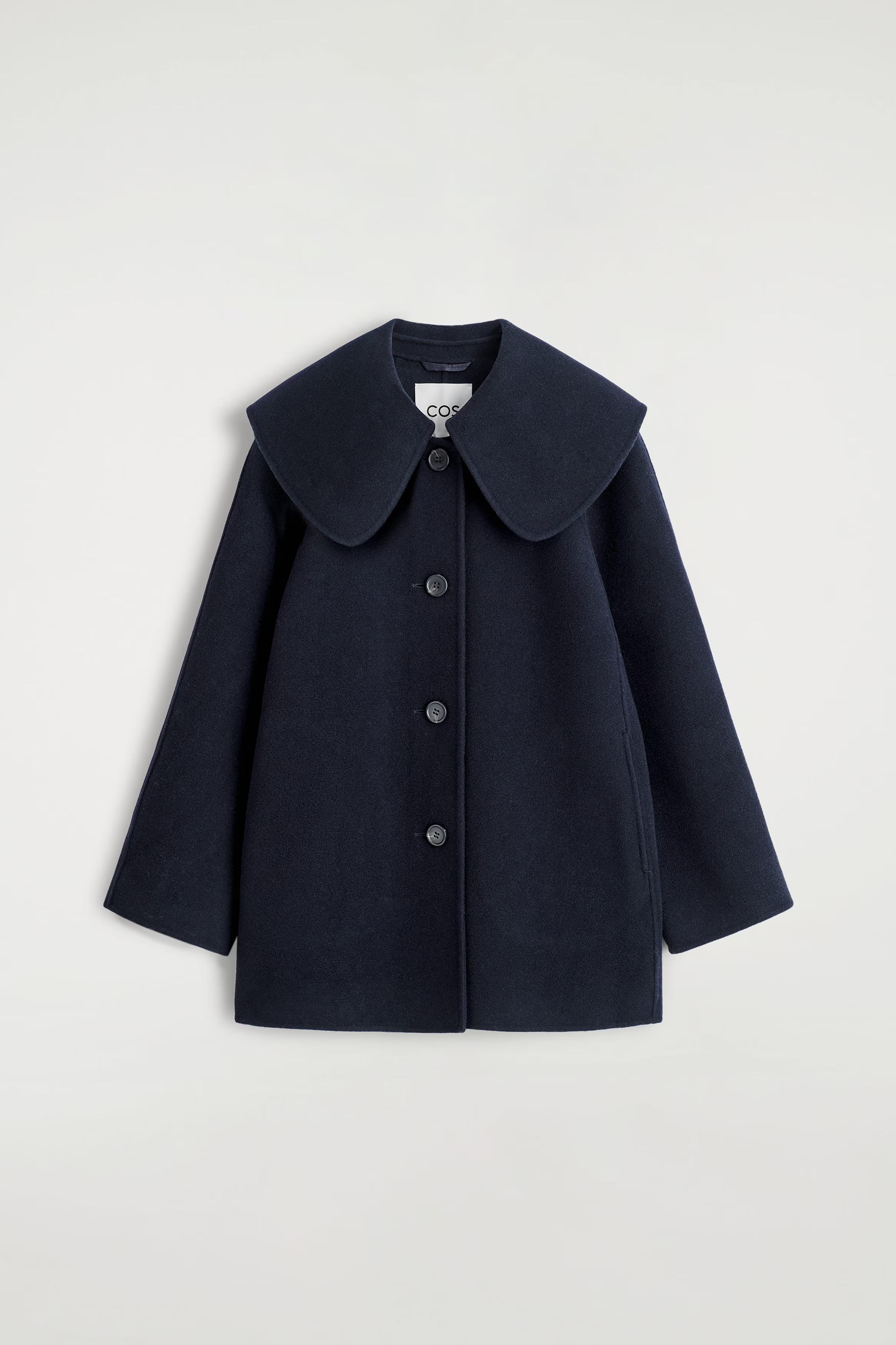 Playful yet refined, this jacket is designed with a rounded, oversized collar that sweeps across the shoulders. It's crafted from luxuriously soft wool that's double-faced for a premium hand feel and offered in a rich navy tone.\u0026nbsp;\u0026nbsp;Regular fitButton closureSide pocketsThis product contains Responsible Wool Standard TE-00047206 (RWS) wool fibre from farms certified to animal welfare and land-management requirements\u0026nbsp;Shell: 100% RWS Wool. Lining: 100% Viscose. Excluding trims / Dry clean\u0026nbsp;Back length of size EU 36 is 74.5cm / Model wears a size EU 36\u0026nbsp;
