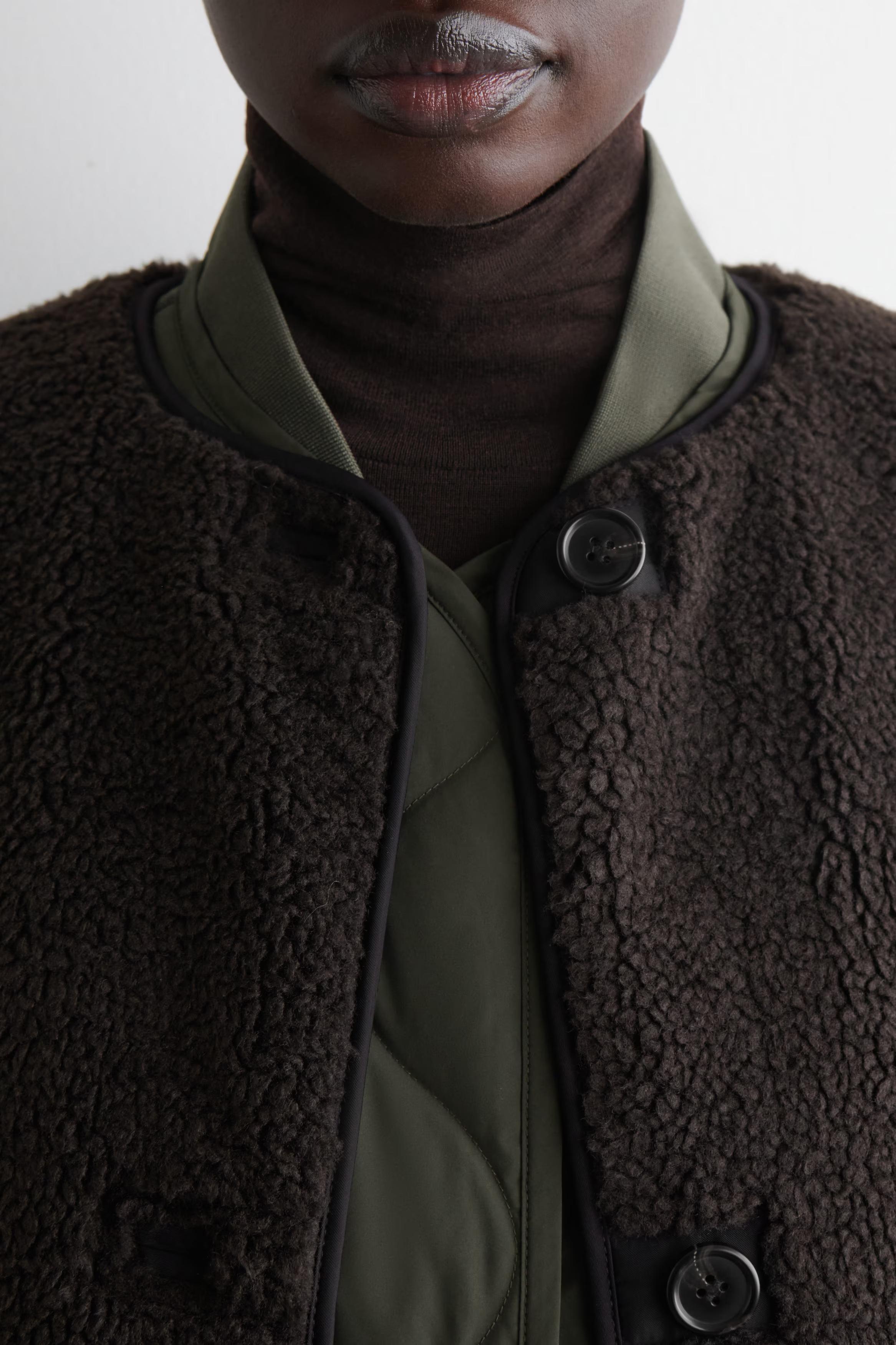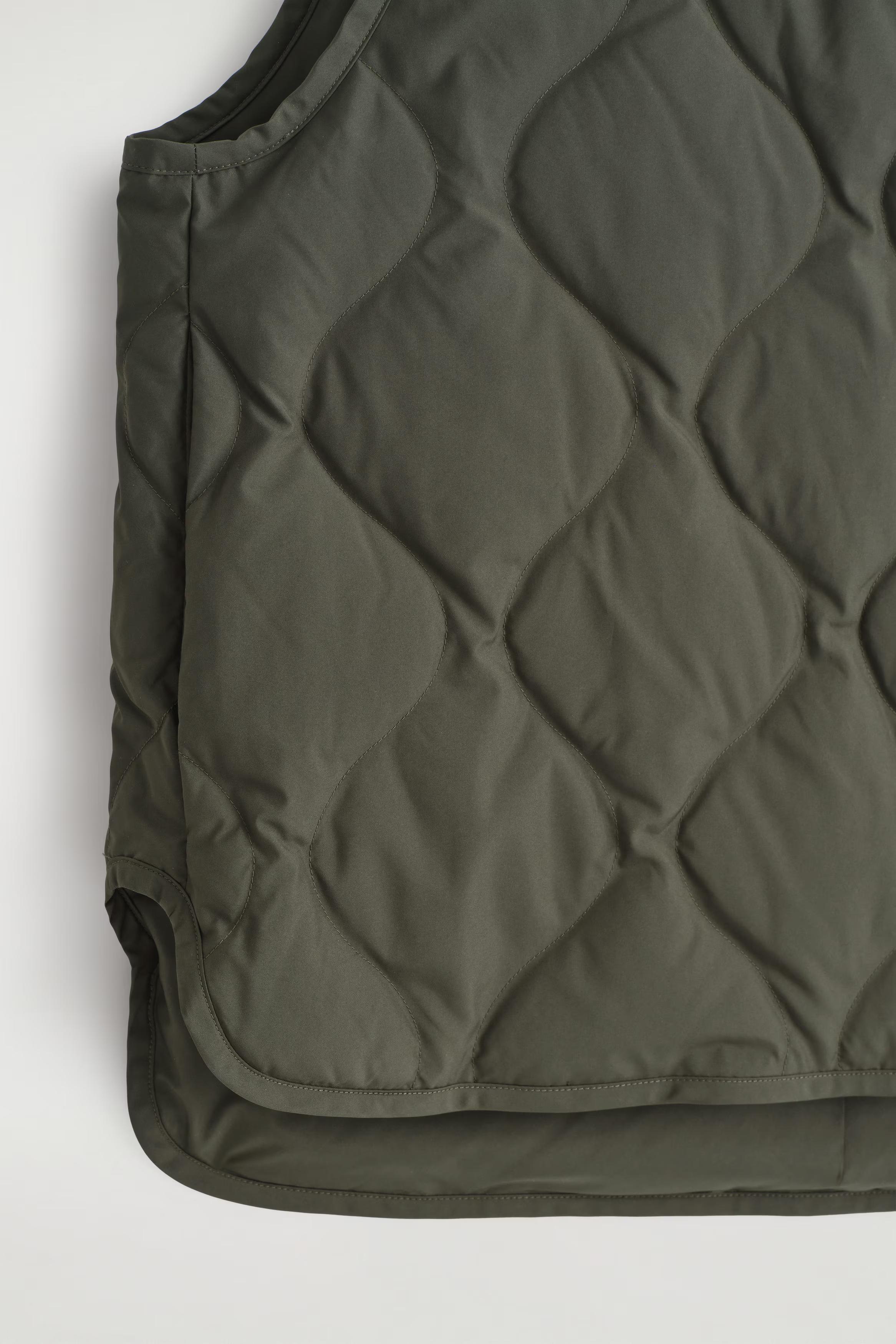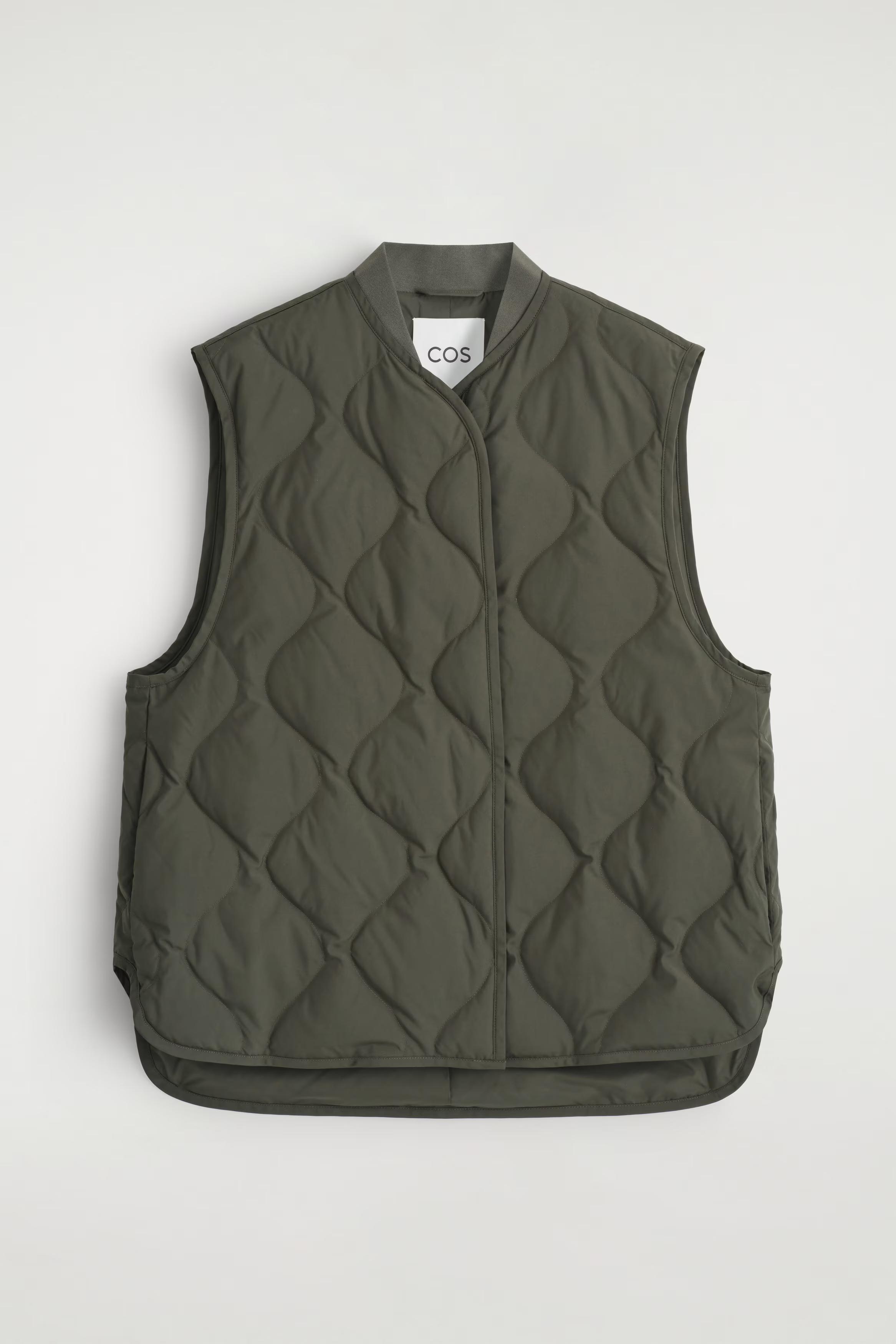 This refined gilet lends itself to transitional layering. Rendered in a rich caramel hue, it's padded with down for featherlight warmth and features a ribbed collar and discreet side pockets. Style it over T-shirts and knitwear.\u0026nbsp;Oversized fitZip closureRecycled polyester is polyester made from PET bottles or end-of-life textile waste. The PET bottles or textile waste is mechanically recycled and processed into new yarn\u0026nbsp;Shell and lining: 100% Recycled polyester. Padding: 80% Recycled down, 20% Recycled feather. Excluding trims / Machine wash\u0026nbsp;Back length of size S is 68.5cm / Model wears a size S\u0026nbsp;