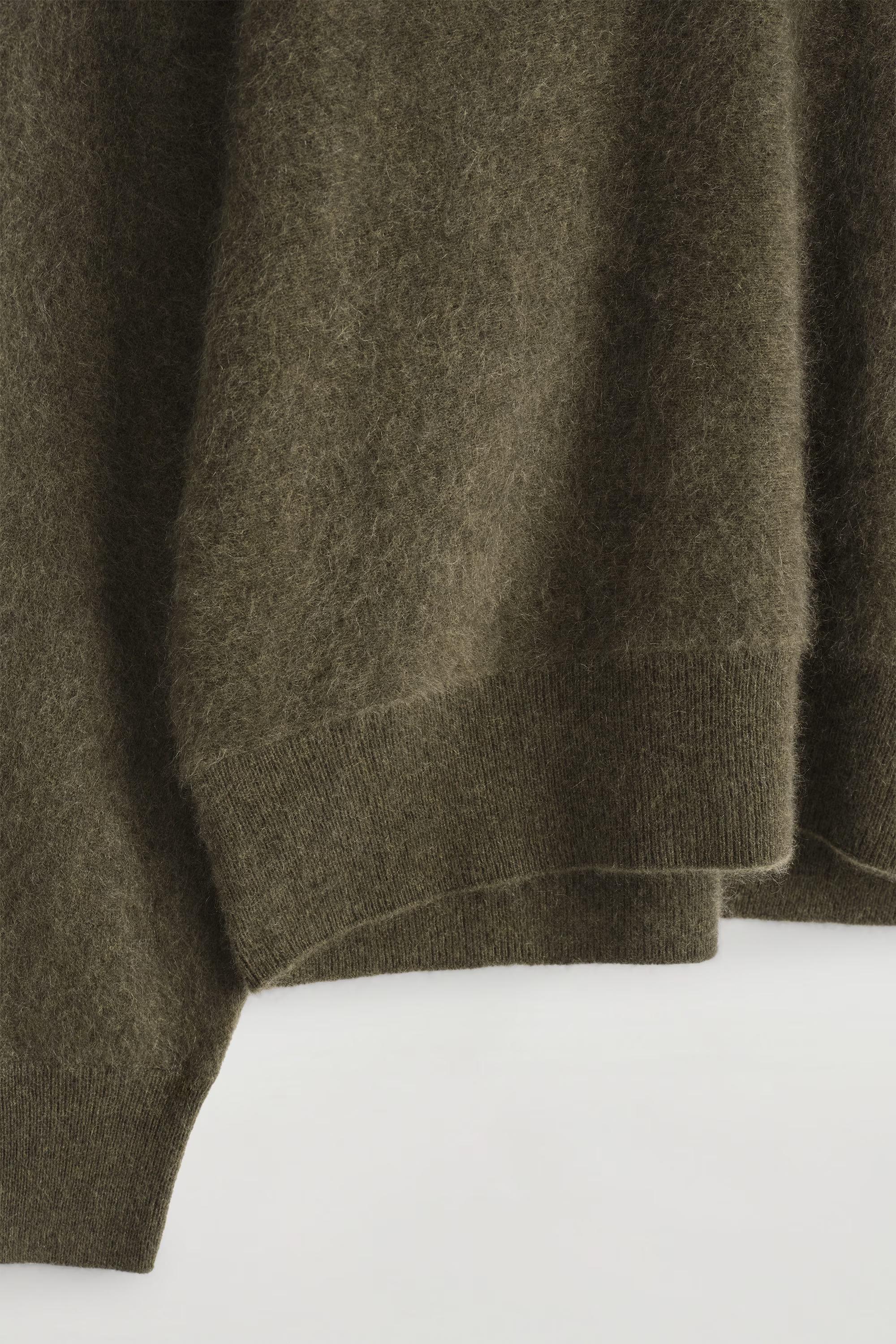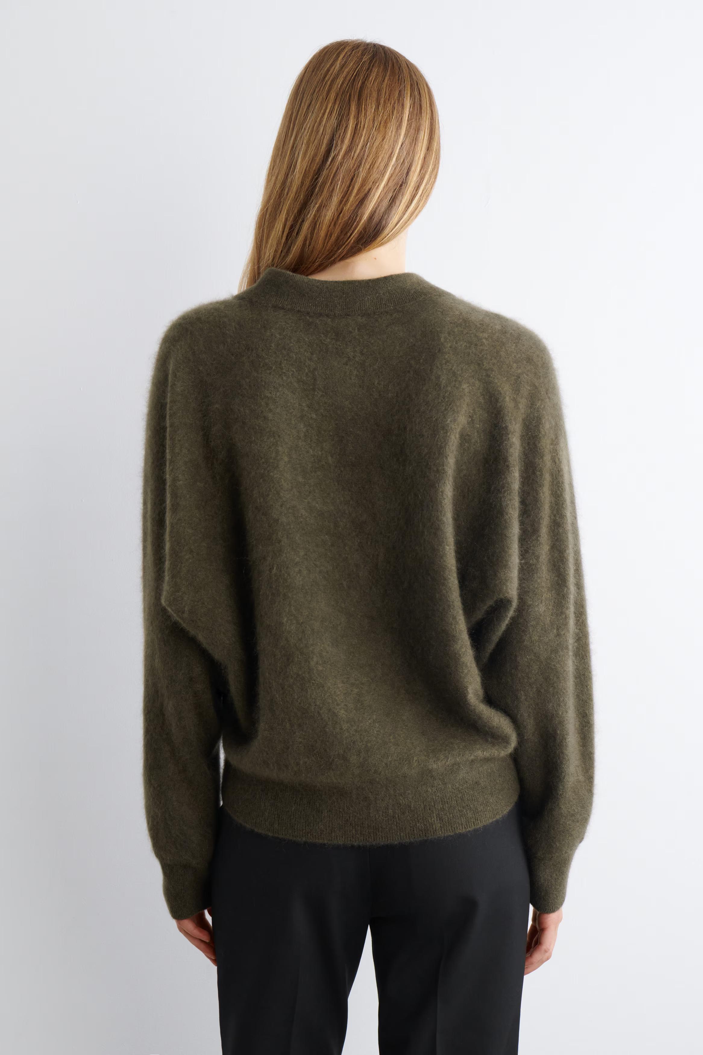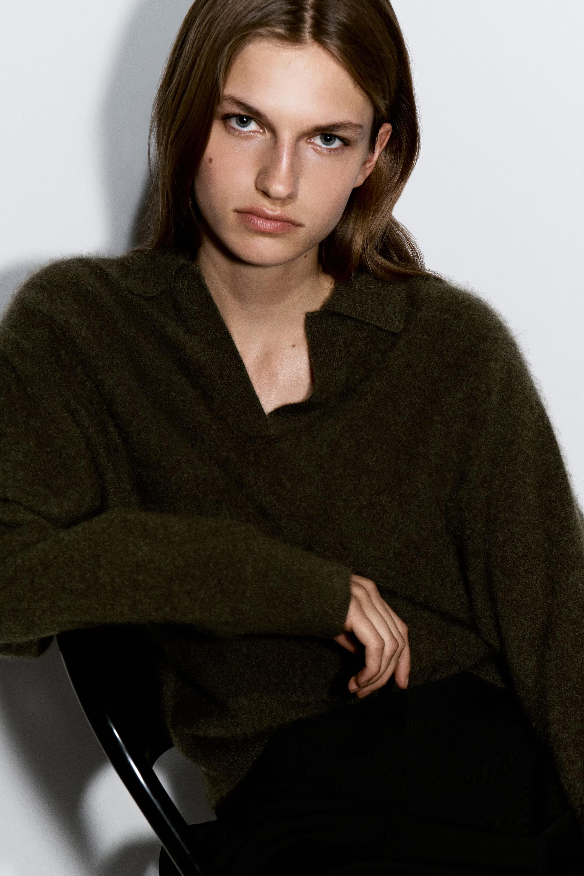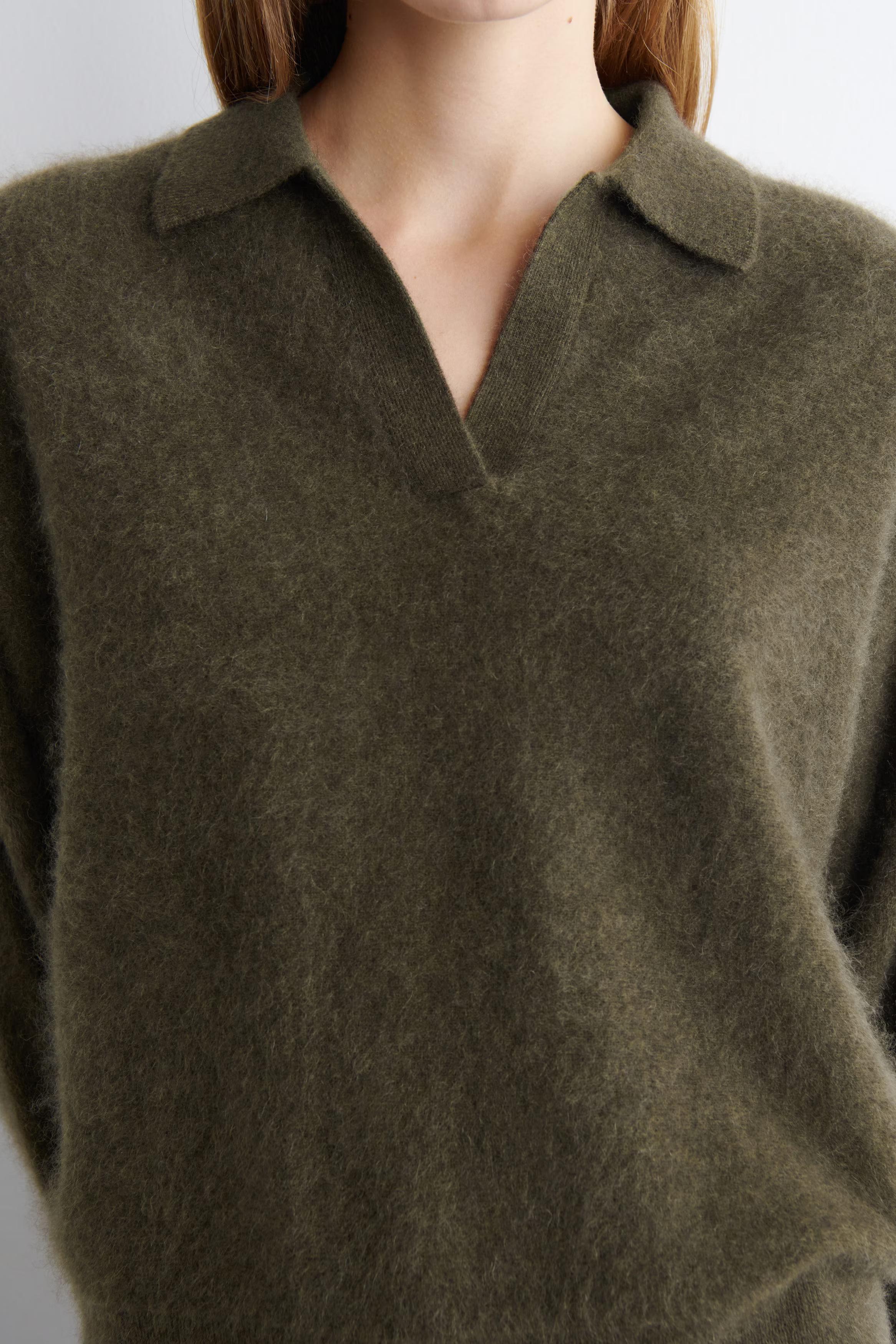 The classic polo is renewed with textural appeal for Pre-Fall 2025. It's knitted from Good Cashmere Standard\u0026reg; cashmere that's brushed for a soft, tactile hand feel and comes in an earthy khaki tone that will style effortlessly with the other pieces in your wardrobe. The open collar and batwing sleeves create an effortless shape.\u0026nbsp;Relaxed fitThe Good Cashmere Standard\u0026reg; is owned by Aid by Trade Foundation (AbTF) and sets out requirements on animal welfare, land management and herders' working conditions\u0026nbsp;Shell: 100% GCS Cashmere. Excluding trims / Machine wash\u0026nbsp;Front length of size S is 59.5cm / Model wears a size S