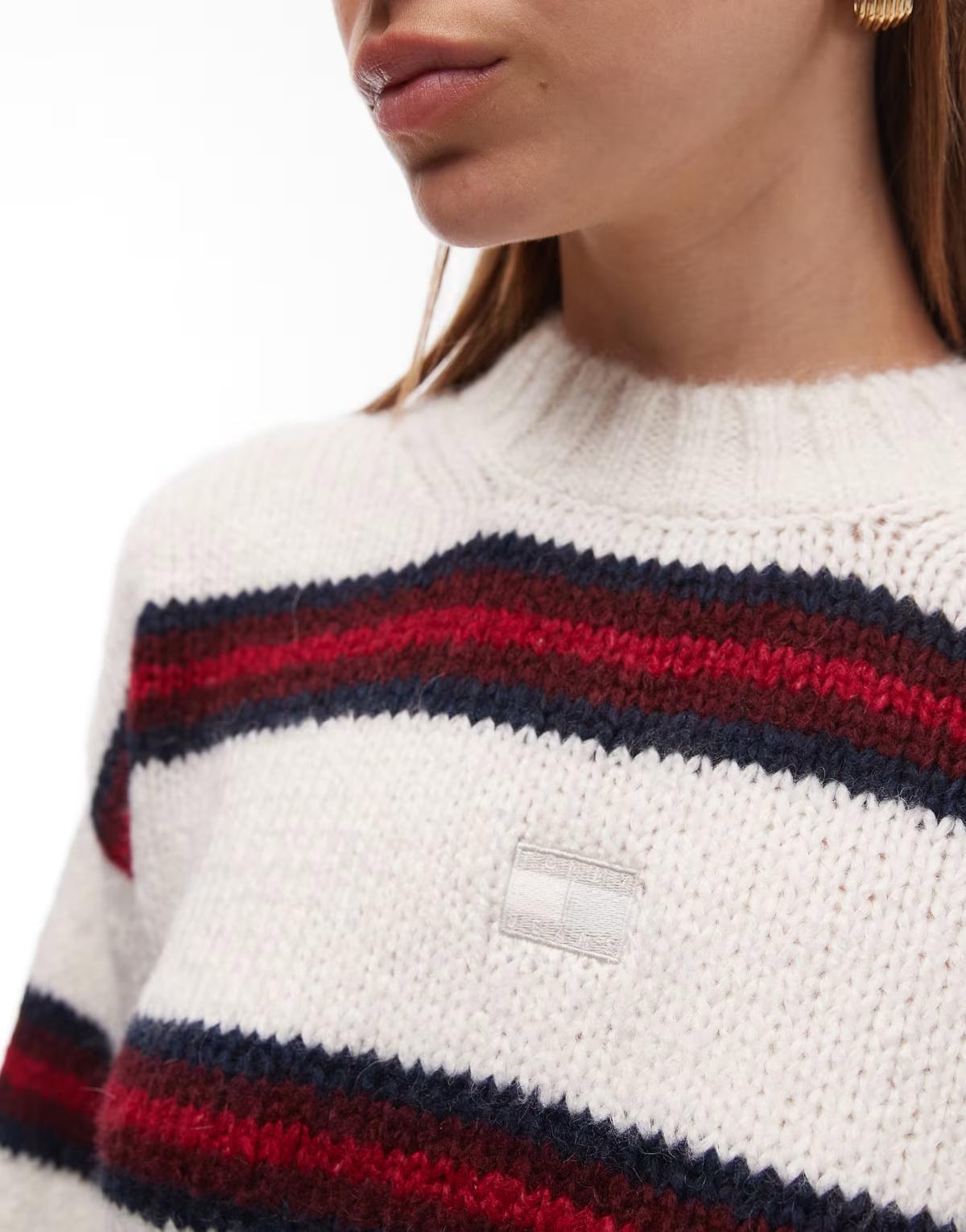 Machine wash according to instructions on care labelMain: 69% Acrylic, 23% Polyester, 8% Alpaca.Founded in 1985, all-American brand Tommy Jeans is best known for its preppy vibe and iconic red, white and blue logo. Branching out, the brand has stepped up its collections to include everything from clothing and accessories to lingerie and fragrances. Scroll our Tommy Jeans at ASOS edit for classic denim pieces from Tommy Jeans, workout gear from Tommy Hilfiger Sport, as well as wardrobe-ready T-shirts, dresses, jackets and coats.Size & FitModel's height: 178cm / 5' 10''Still unsure what size to get? Check out our size guide.