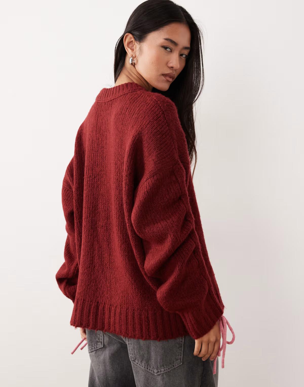 Machine wash according to instructions on care labelMain: 73% Acrylic, 27% Polyester.This is ASOS DESIGN – your go-to for all the latest trends, no matter who you are, where you’re from and what you’re up to. Exclusive to ASOS, our universal brand is here for you, and comes in all our fit ranges: ASOS Curve, Tall, Petite and Maternity. Created by us, styled by you.Size & FitModel's height: 170 cm/5'7"Still unsure what size to get? Check out our size guide.