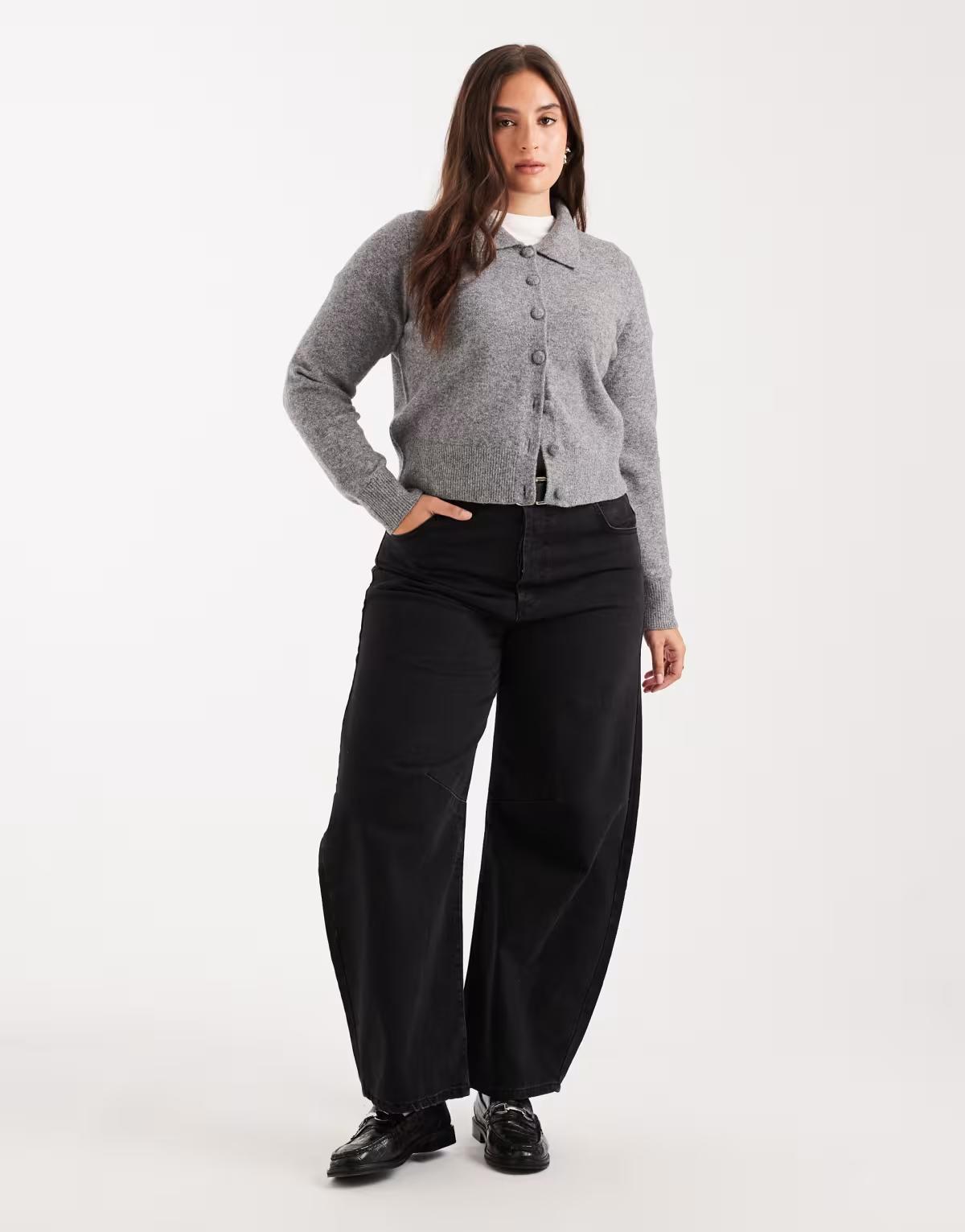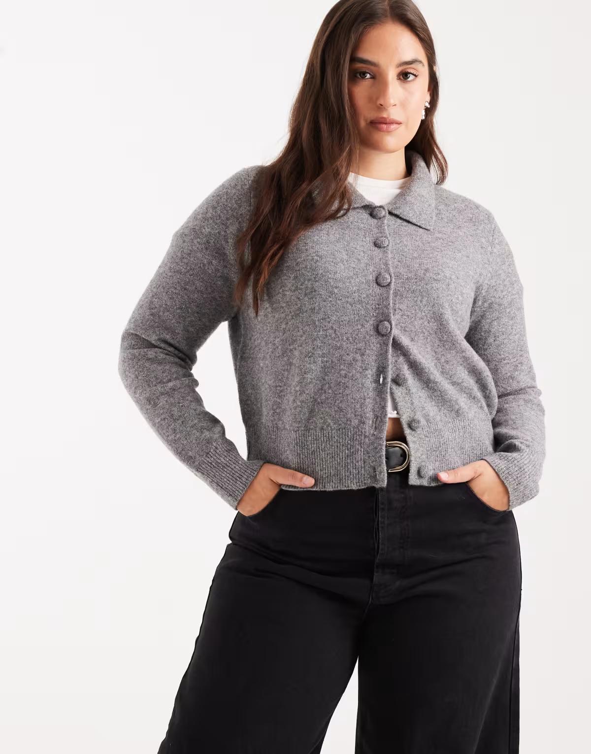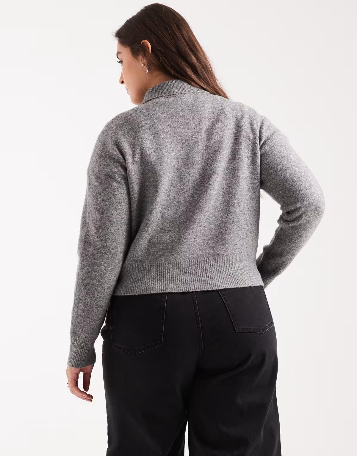 Main: 55% Polyester, 25% Acrylic, 18% Polyamide, 2% Elastane.Since setting up shop in the 60s, New Look Plus has become a high-street classic known for creating universally loved, wardrobe-ready collections. Shop the New Look Plus at ASOS edit, featuring everything from chic LBDs and printed dresses to all-important accessories and figure-flattering jeans (if you’re anything like us, you’re always on the hunt for those). While you’re there, check out the label’s cute-yet-classy tops and blouses for your next ‘jeans and a nice top’ day.Size & FitModel's height: 177.5cm / 5' 10''