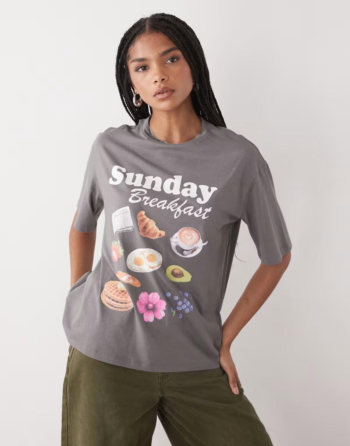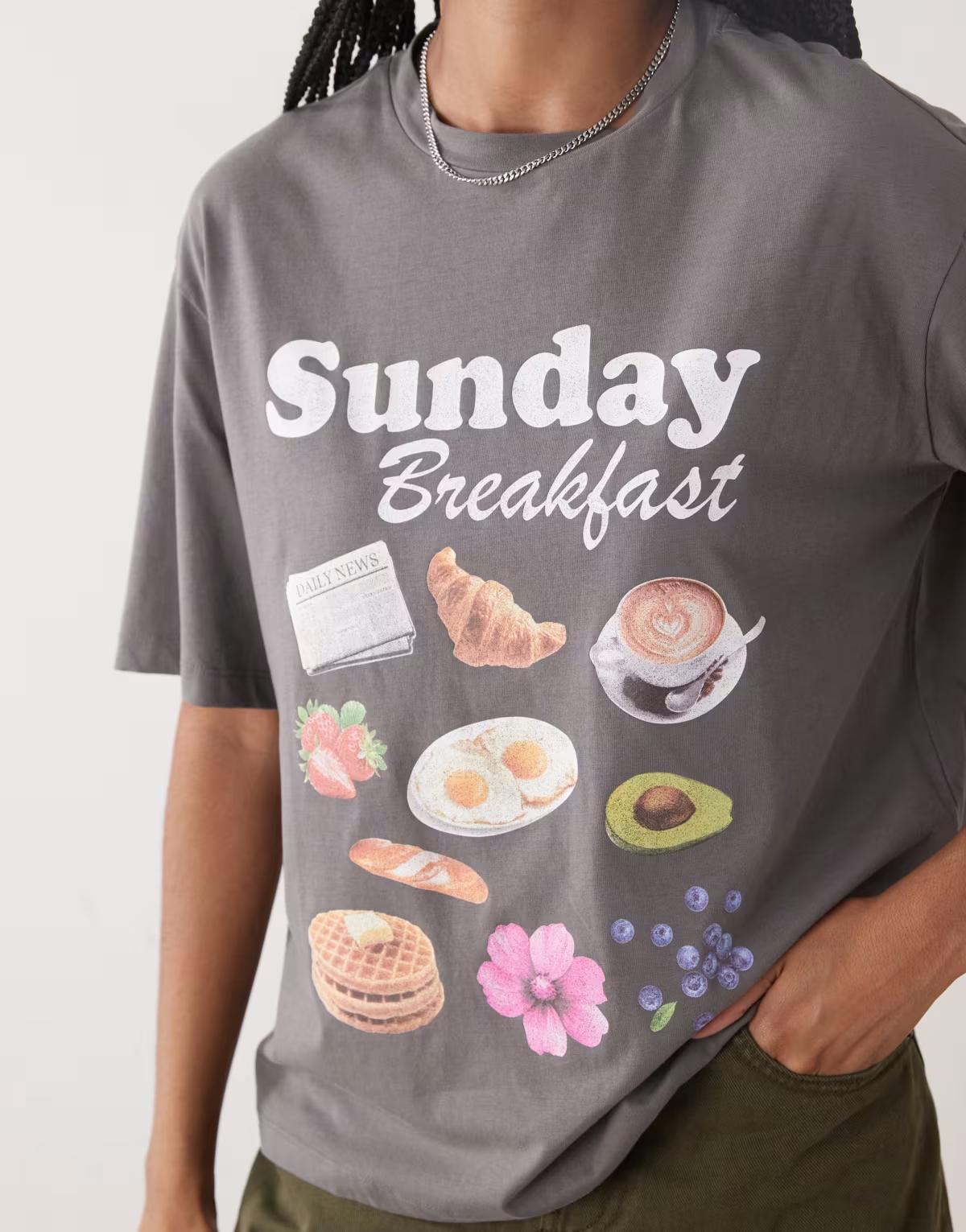Breakfast graphic and text print on front
