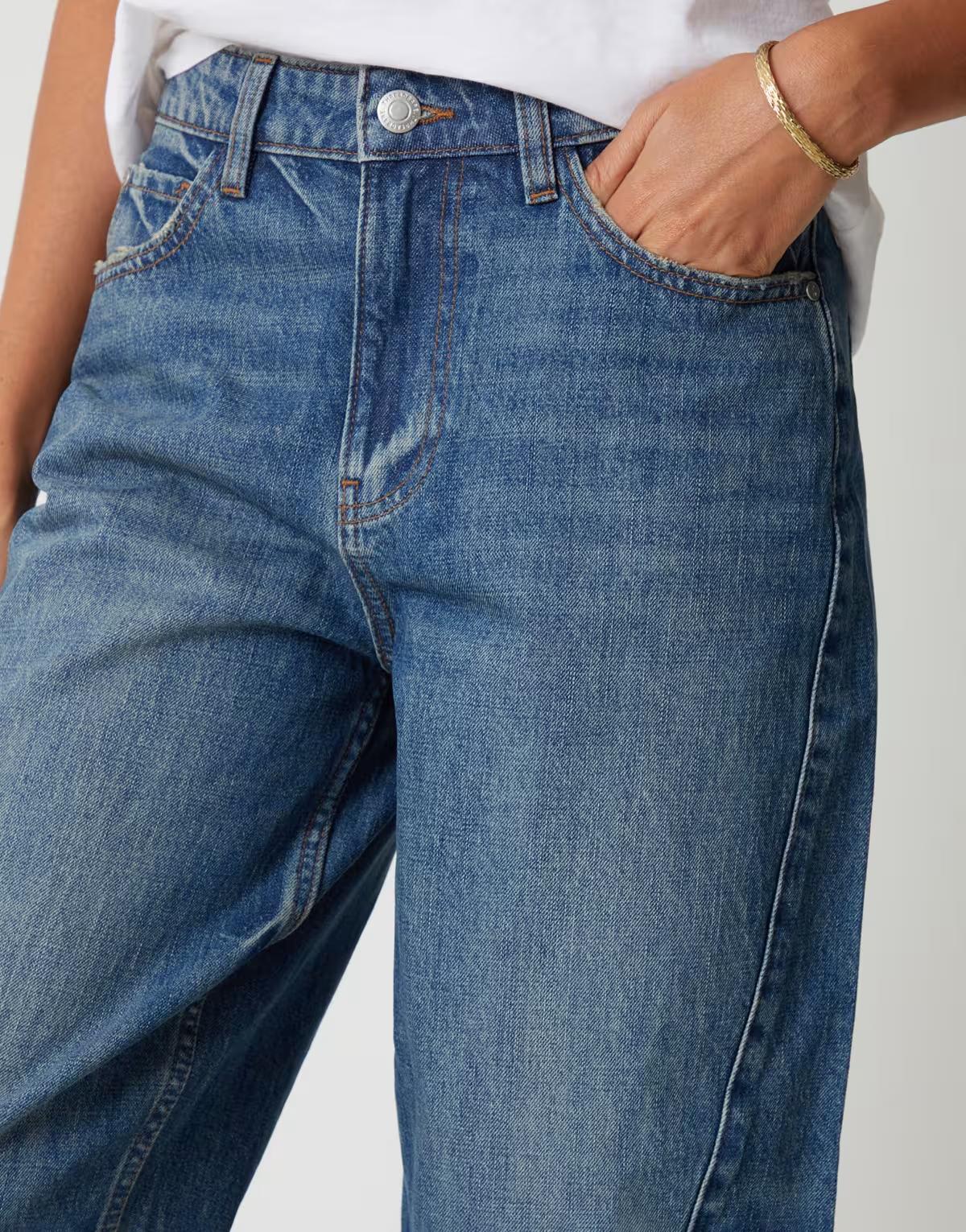 Machine wash according to instructions on care labelNon-stretch denim: mid-blue wash