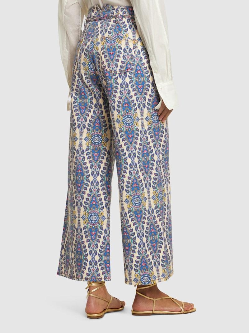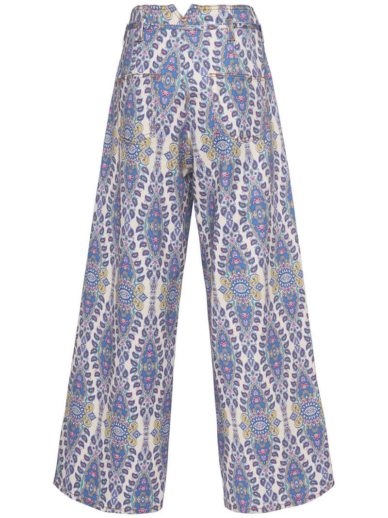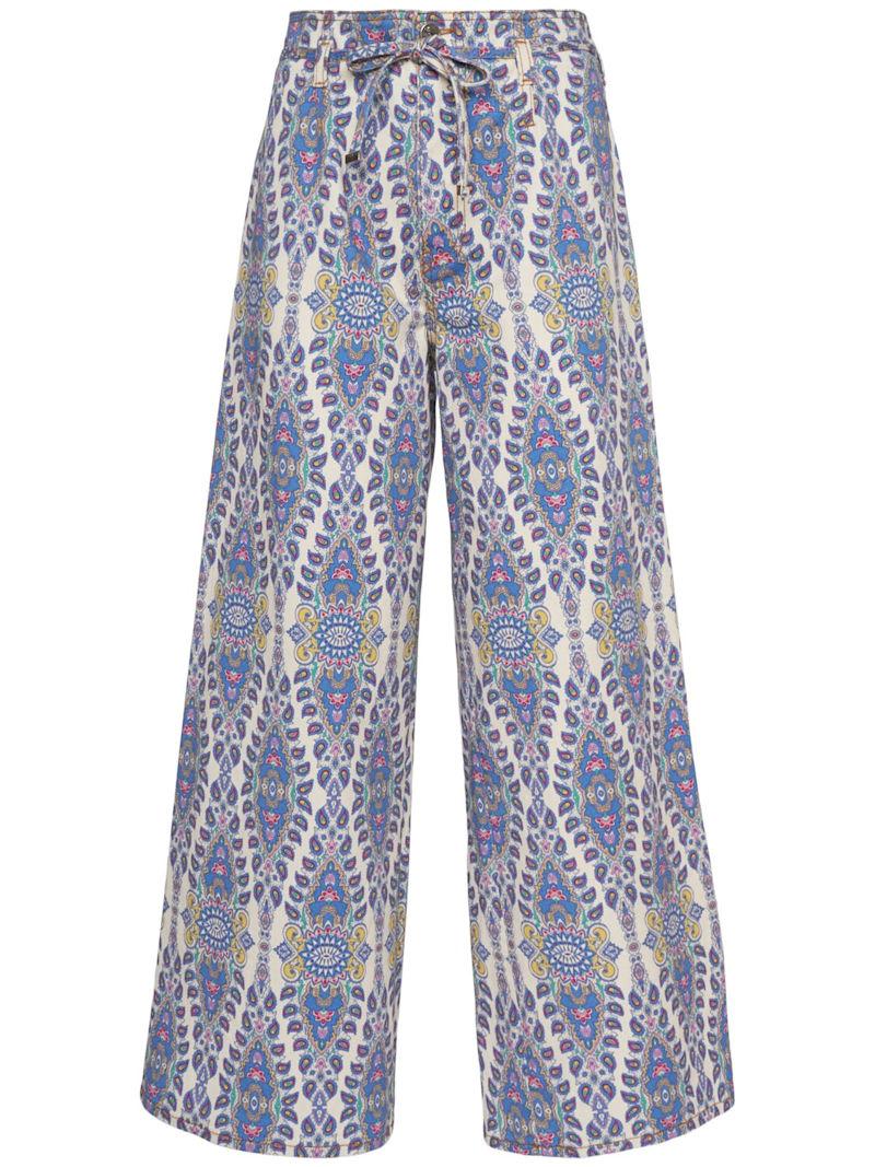印花阔腿牛仔裤 - 蓝色/多色 - 女士 - Etro - 正面纽扣和隐藏式拉链开合.