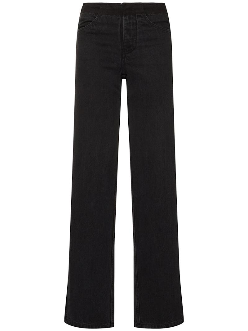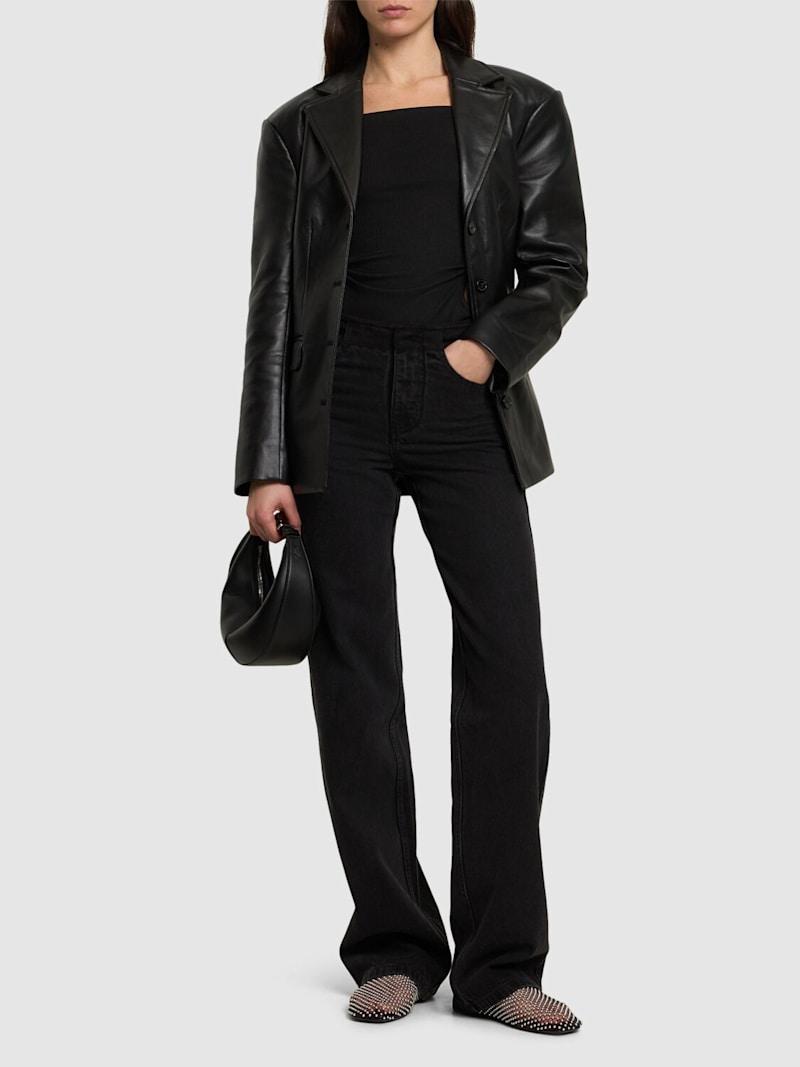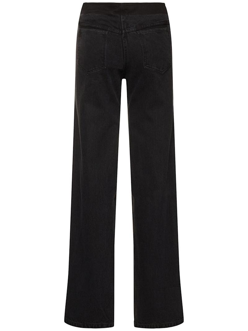 解构高腰阔腿牛仔裤 - 黑色 - 女士 - Christopher Esber - 正面纽扣和隐藏式拉链开合.