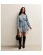 Light Blue Paisley Print Tie Neck Satin Mini Dress