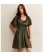 Green Checked Ruffle Trimmed Mini Dress