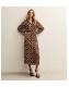 Brown Satin Polka Dot Midi Shirt Dress