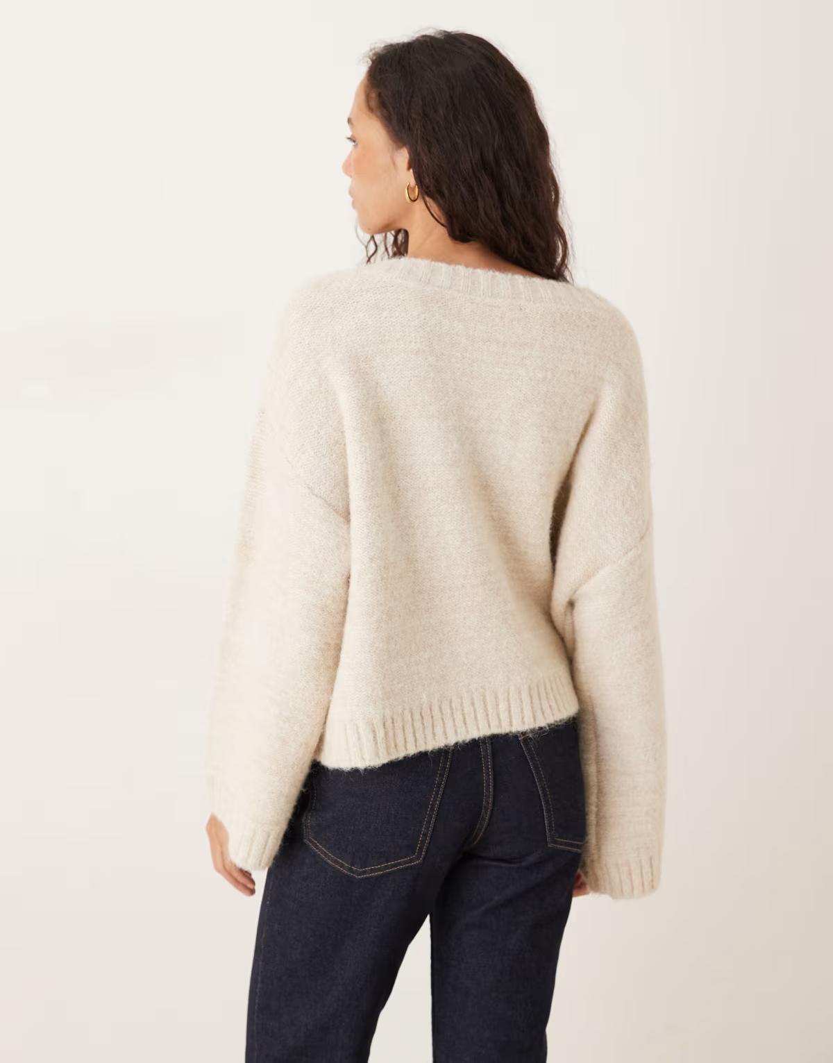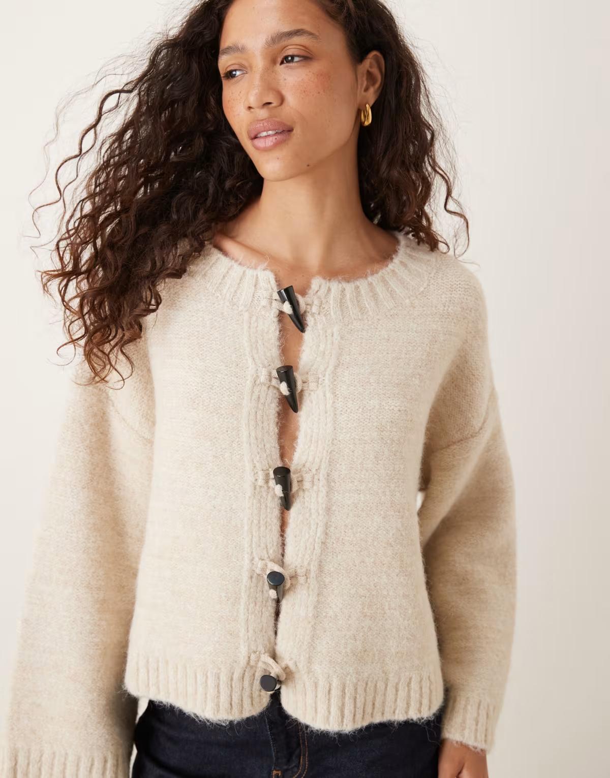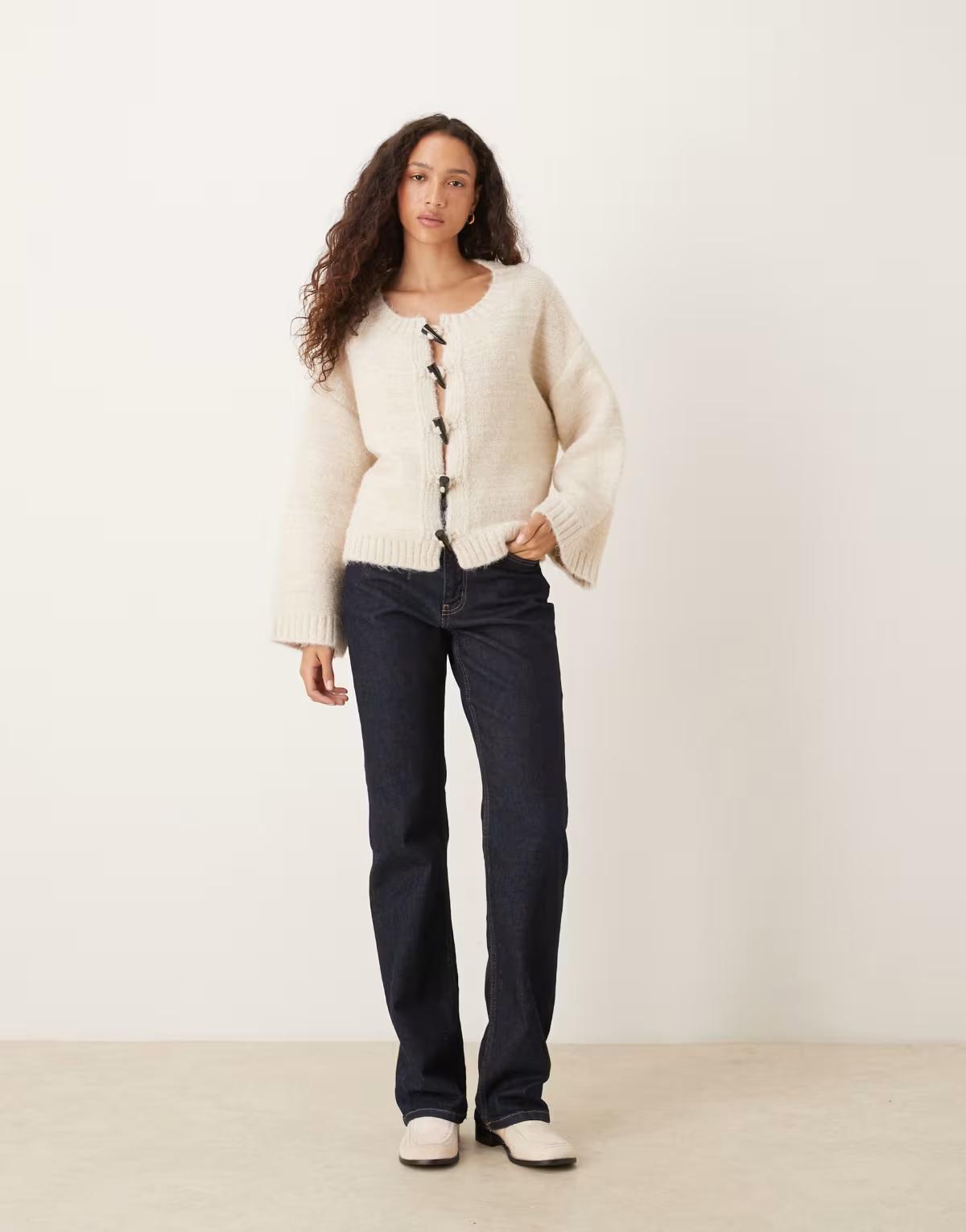 VRG GRL toggle front cardigan with fluted sleeves in cream