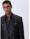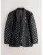 Black Regular Fit Sequin Geometric Pattern Blazer