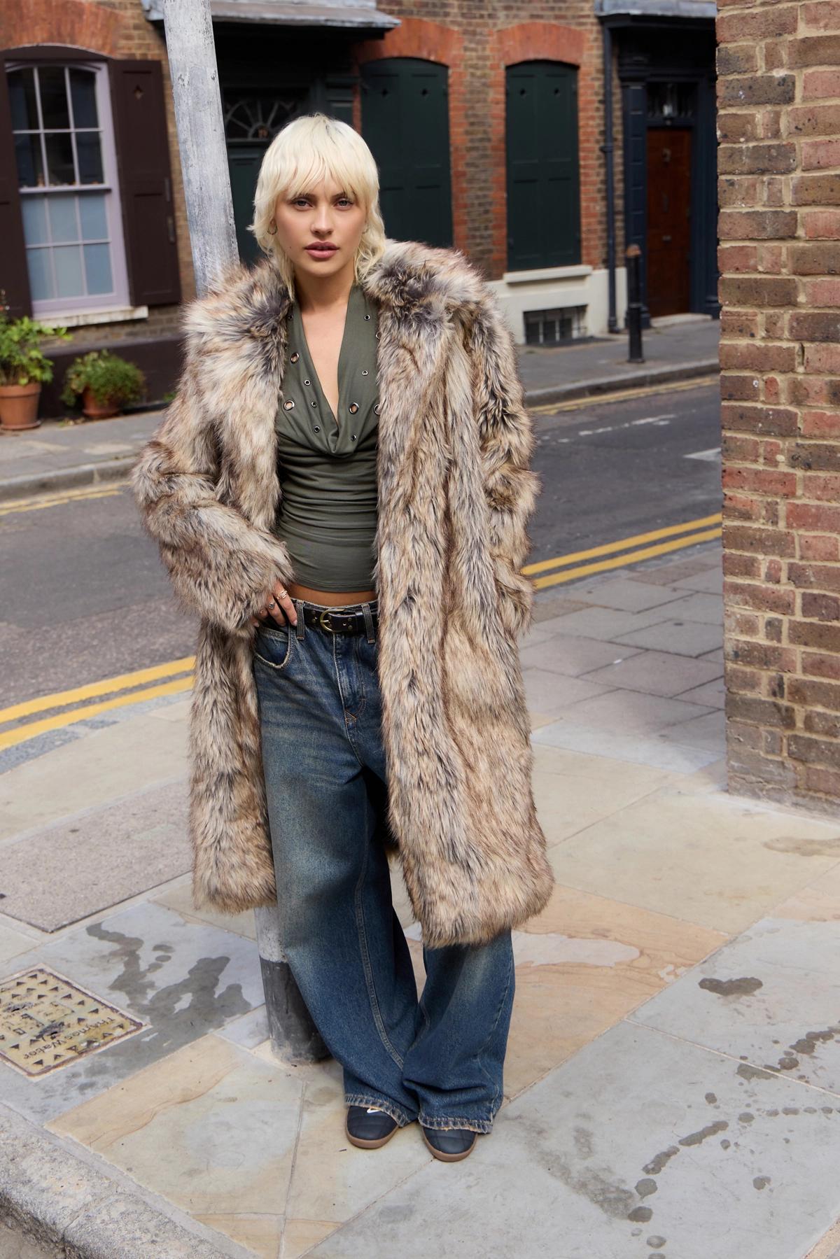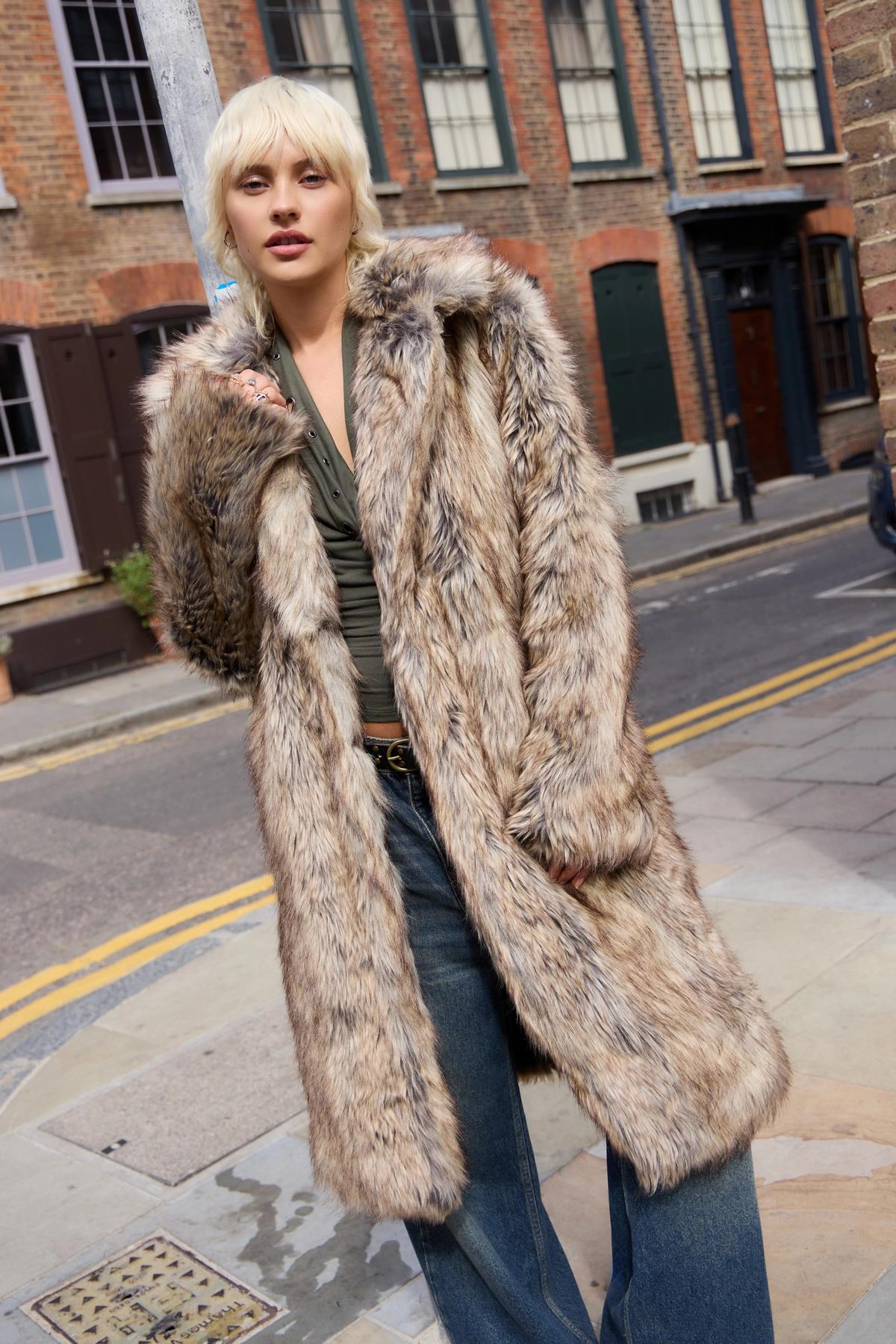 Silence + Noise Tipped Faux Fur Maxi Coat