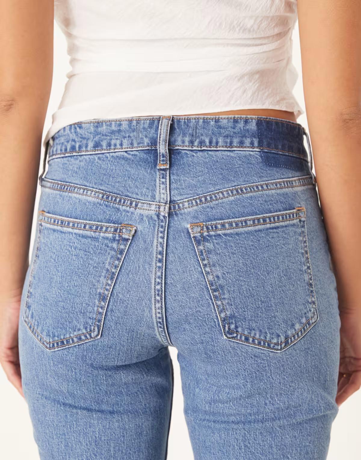 Machine wash according to instructions on care labelNon-stretch denim: mid-blue wash