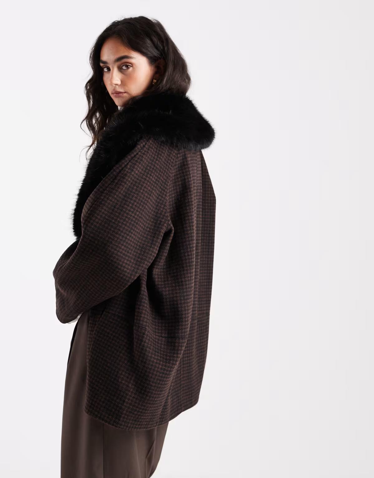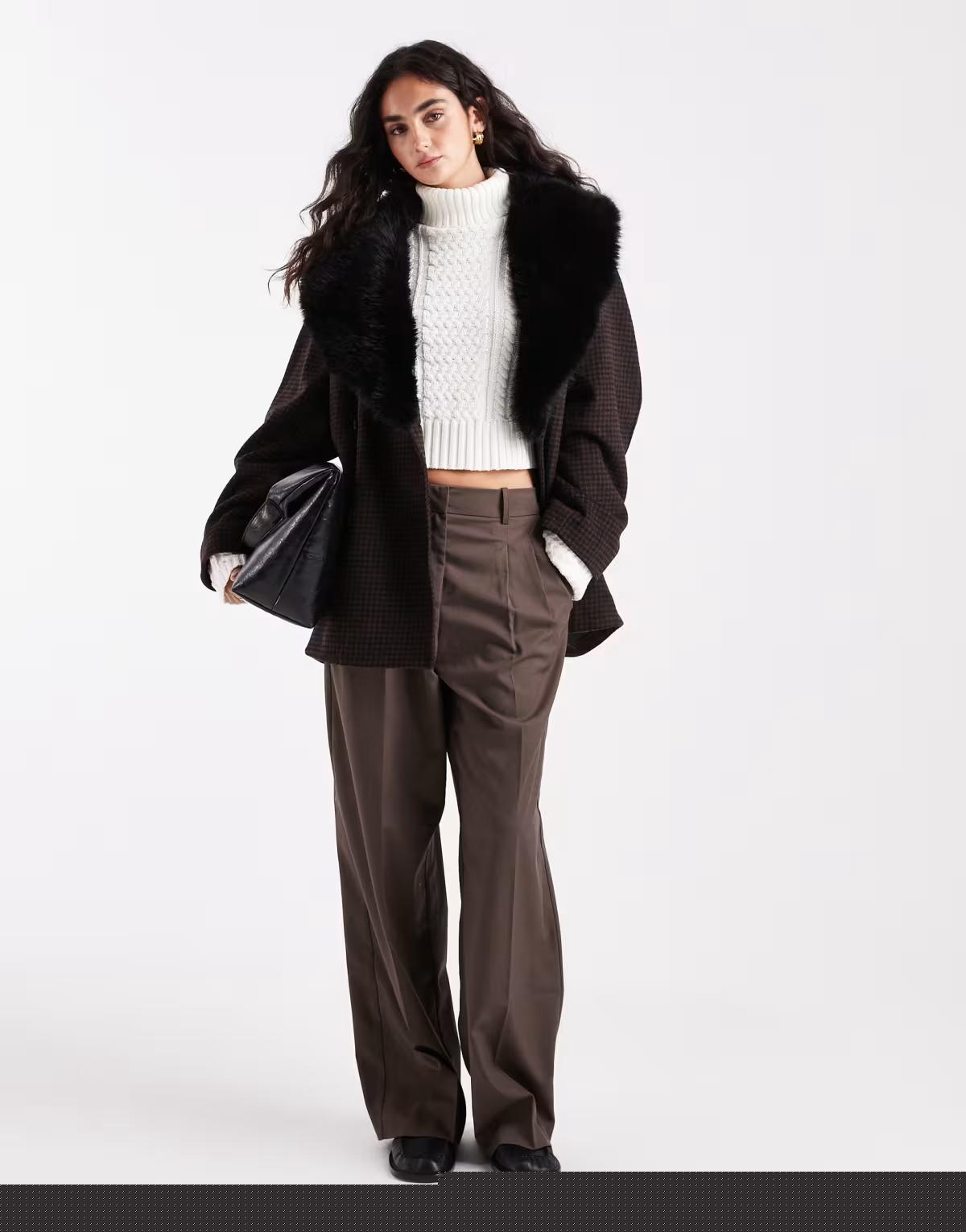 Main: 58% Polyester, 25% Acrylic, 7% Polyamide, 7% Viscose, 2% Wool, 1% Cotton, Faux Fur: 100% Polyester.This is ASOS DESIGN – your go-to for all the latest trends, no matter who you are, where you’re from and what you’re up to. Exclusive to ASOS, our universal brand is here for you, and comes in all our fit ranges: ASOS Curve, Tall, Petite and Maternity. Created by us, styled by you.Size & FitModel's height: 175.5cm / 5' 9''