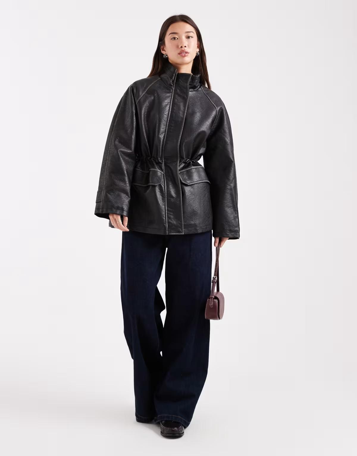 Coating: 100% Polyurethane, Lining: 100% Polyester, Shell: 89% Polyester, 8% Viscose, 3% Cotton.This is ASOS DESIGN – your go-to for all the latest trends, no matter who you are, where you’re from and what you’re up to. Exclusive to ASOS, our universal brand is here for you, and comes in all our fit ranges: ASOS Curve, Tall, Petite and Maternity. Created by us, styled by you.Size & FitModel's height: 175.5cm / 5' 9''