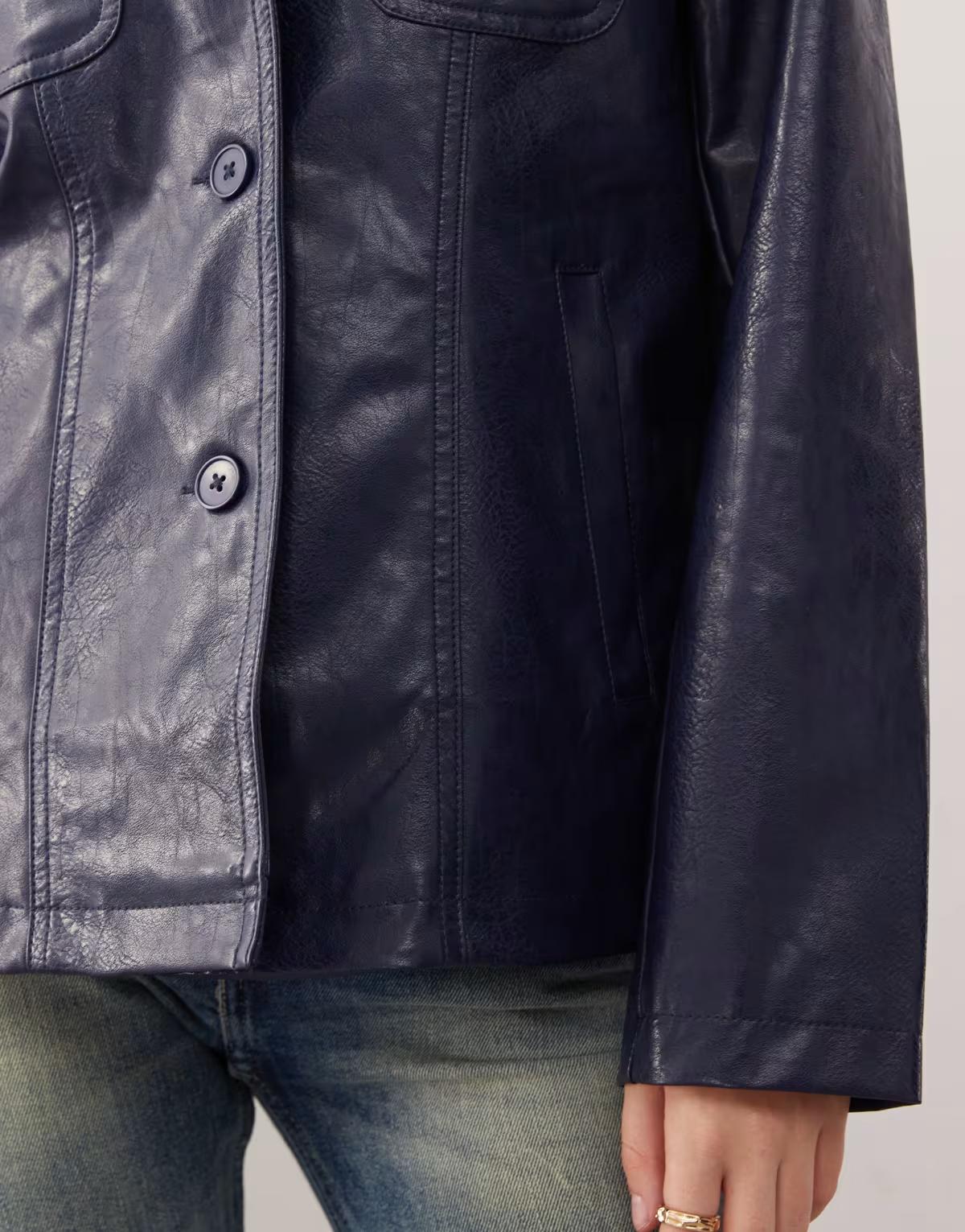 Coating: 100% Polyurethane, Main: 100% Viscose, Base Fabric: 100% Viscose, Lining: 100% Polyester.If your aesthetic is part on-trend, part throwback vibes, then you’ll love Reclaimed Vintage. With two distinct collections, Reclaimed Vintage Inspired serves up fresh designs with a vintage twist, while Reclaimed Vintage Revived is all about handpicked vintage gems and customised pieces. From bold-printed dresses and utility trousers to embellished jackets and accessories, our Reclaimed Vintage at ASOS edit has it all and more.Size & FitModel's height: 173.5cm / 5' 8½''