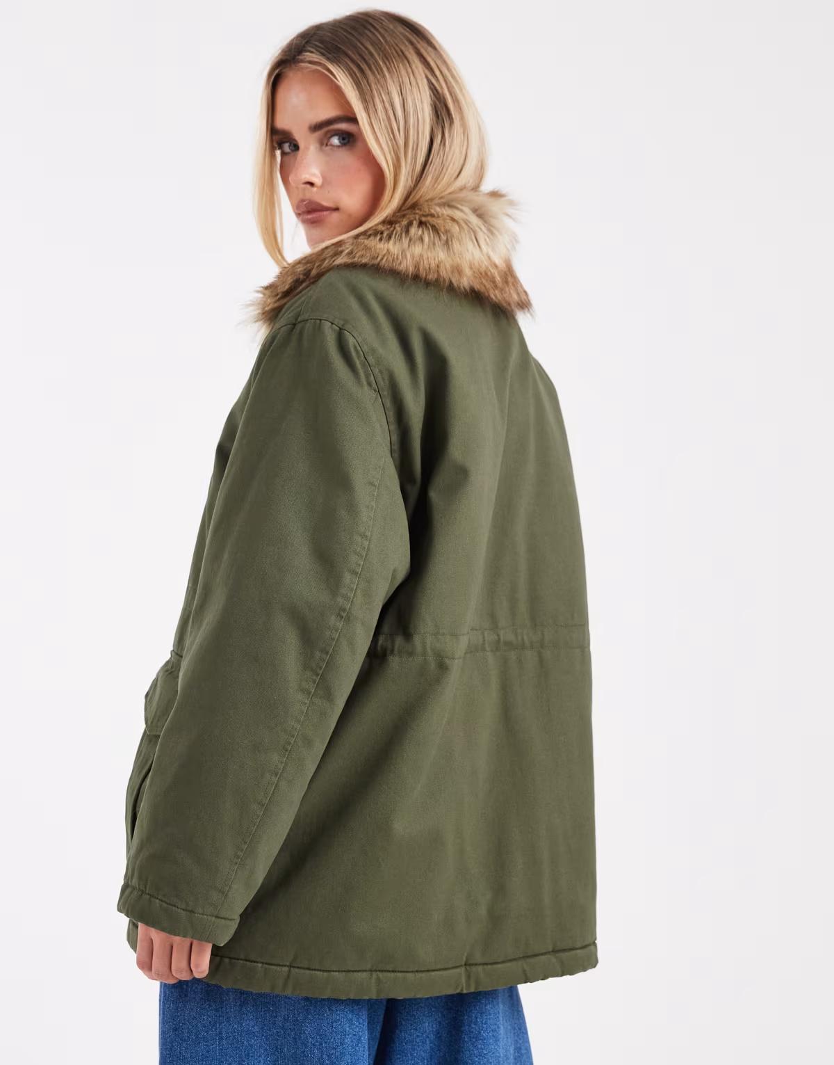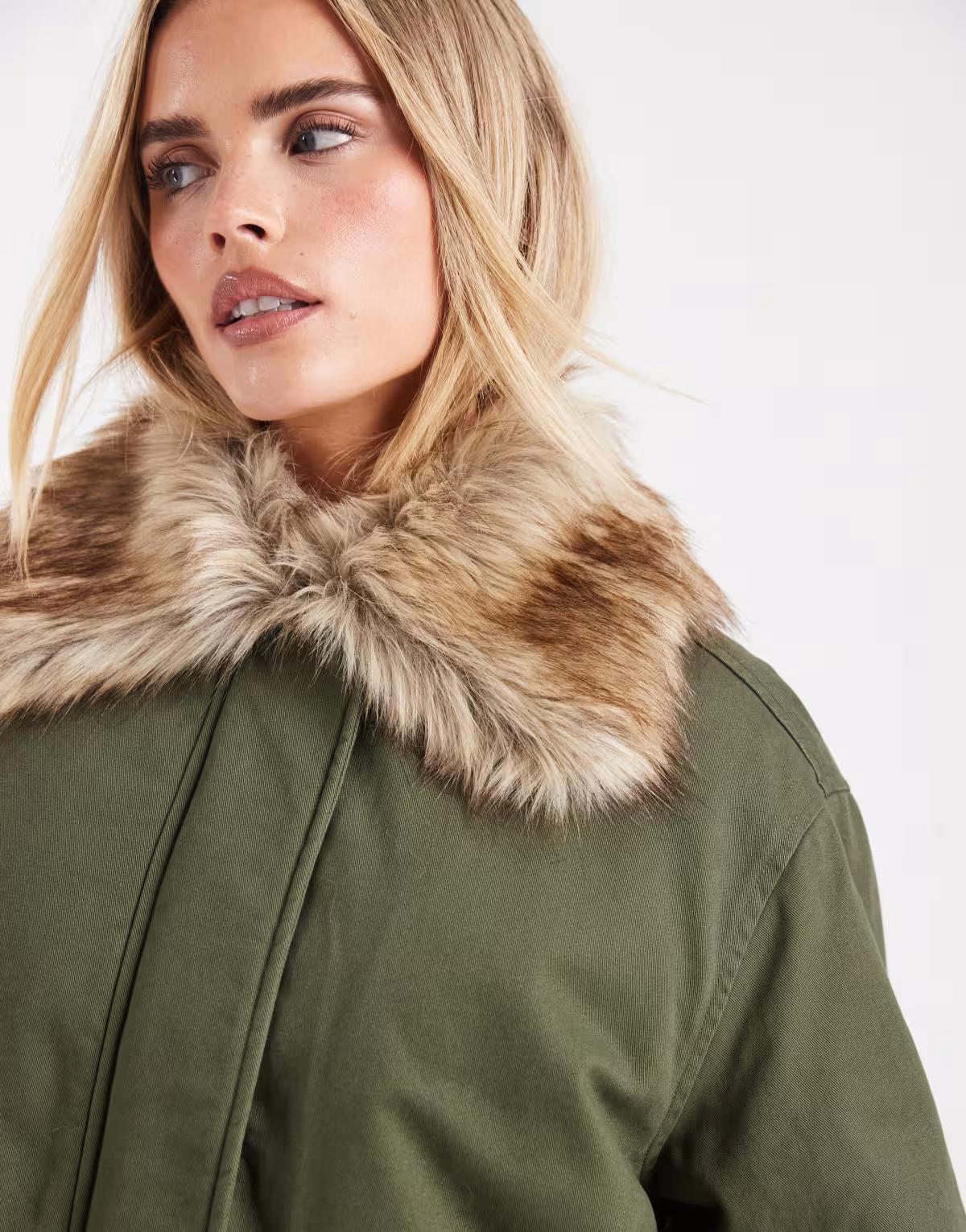 Lining: 100% Polyester, Shell: 100% Cotton, Wadding: 100% Polyester, Faux Fur: 47% Acrylic, 37% Modacrylic, 16% Polyester.Miss Selfridge Petite takes you from day to date night with its off-duty looks and full-on glamour. Solve what-to-wear dilemmas with its dresses and accessories that combine inherent femininity and an impressive attention to detail.Size & FitModel's height: 162CM / 5ft3