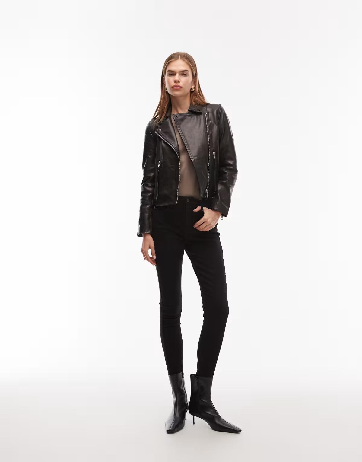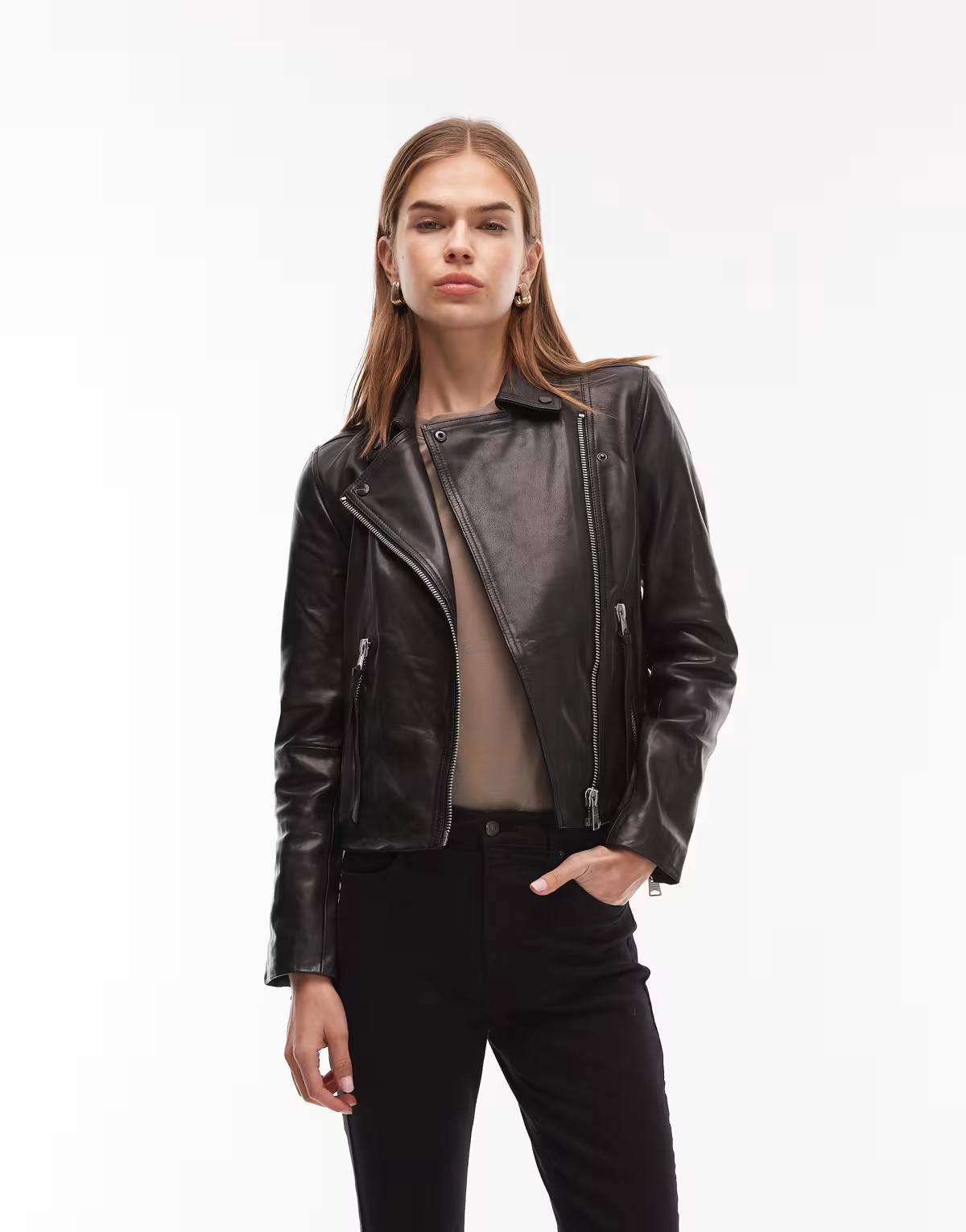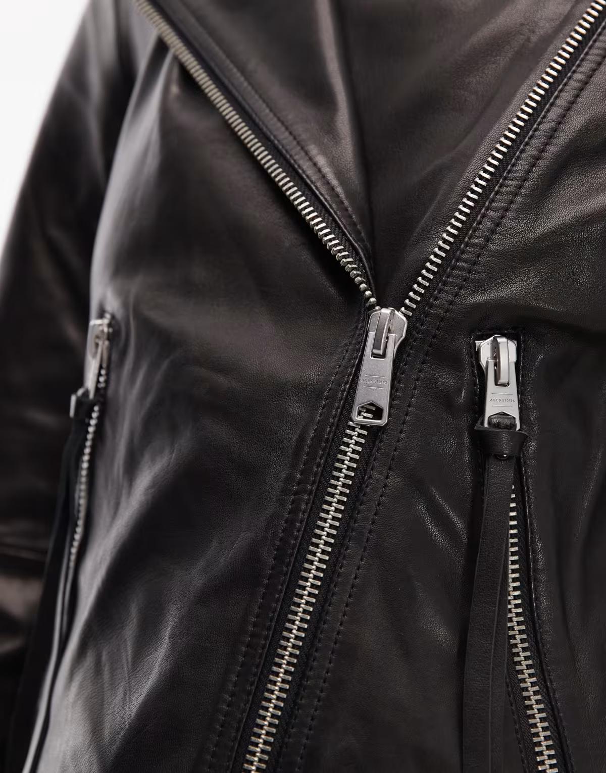 Main: 100% Leather.East London born and bred, AllSaints turned heads in the mid-90s with its investment leather jackets. Today, worn-in denim, draped cuts and classic jersey pieces reflect the laid-back attitude at the heart of the brand.Size & FitModel's height: 178cm / 5' 10''