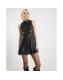 Black Faux Leather Pleated Hem Mini Dress