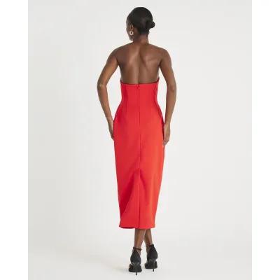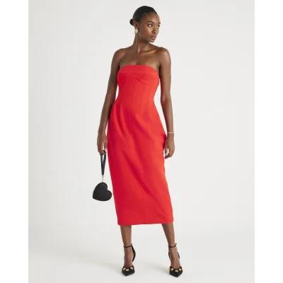 Red Sleeveless Bodycon Bandeau Midi Dress
