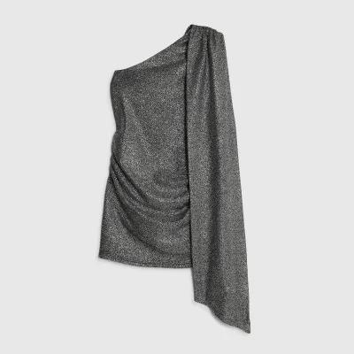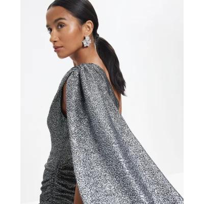 Petite Silver Asymmetric Glitter Mini Dress