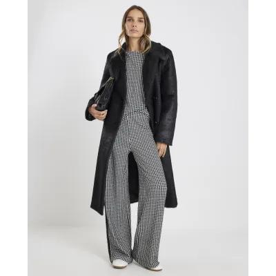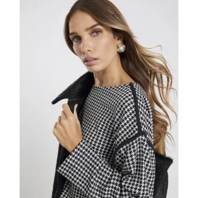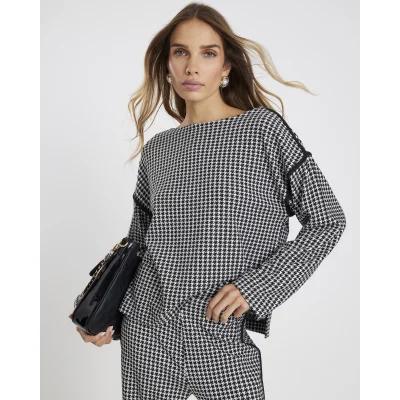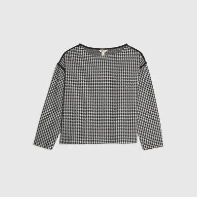 Black Long Sleeve Dogtooth Print Sweatshirt