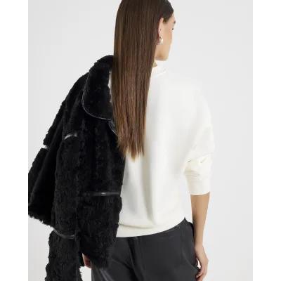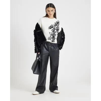 Cream Long Sleeve Floral Applique Sweatshirt