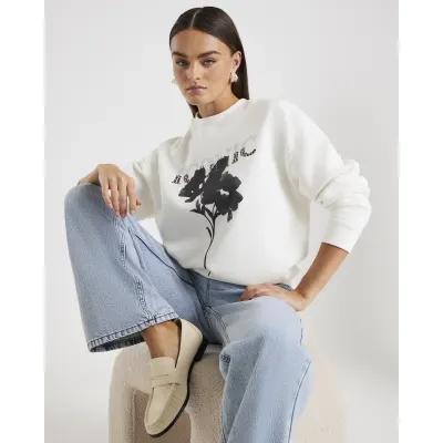 White Long Sleeve Iconic Flower Sweatshirt
