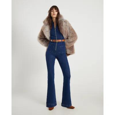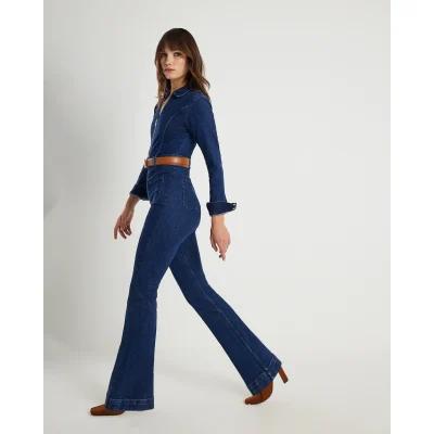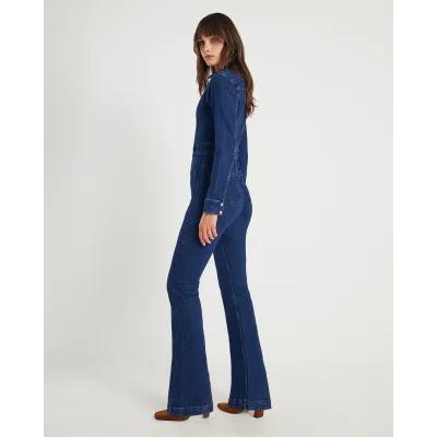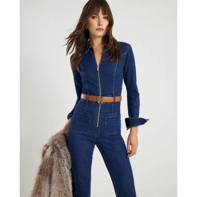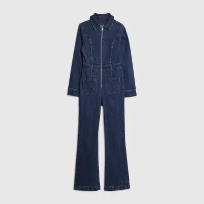 Blue Denim Long Sleeve Stretch Jumpsuit