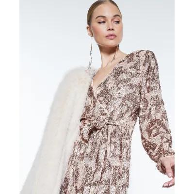 Rose Gold Long Sleeve Sequin Belted Playsuit