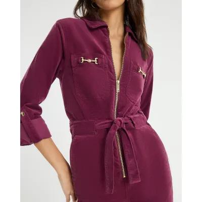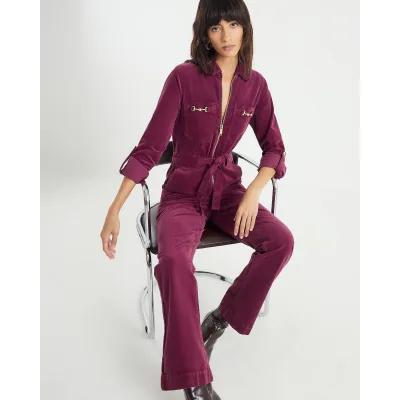 Red Corduroy Long Sleeve Snaffle Jumpsuit