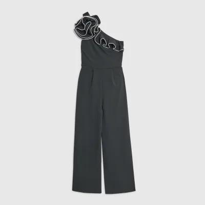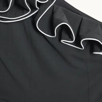 Black Asymmetric Tipped Frill Jumpsuit