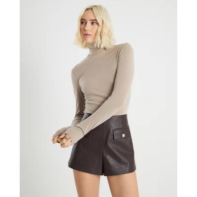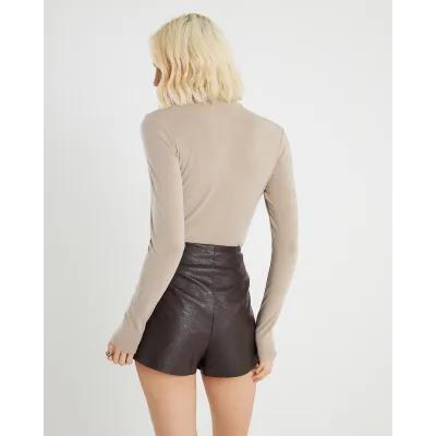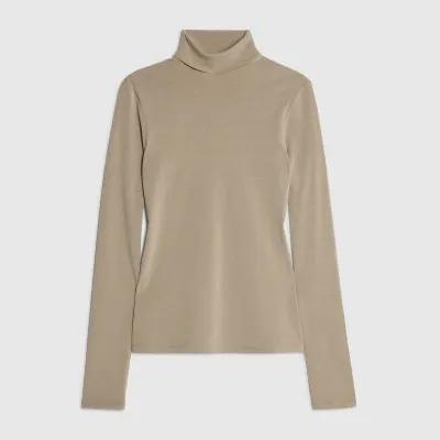 Beige Long Sleeve Roll Neck Top