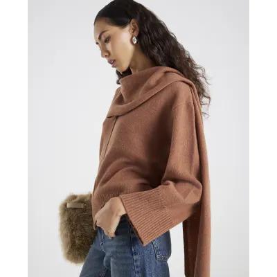 Brown Premium Wool Scarf Wrap Jumper
