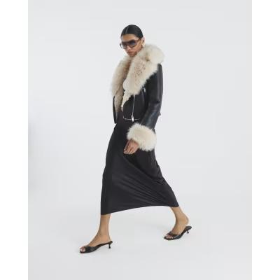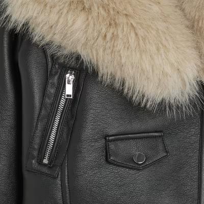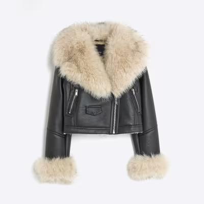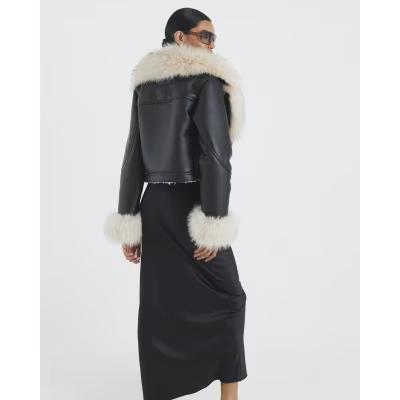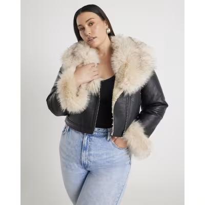 Black Faux Fur Faux Leather Biker Jacket