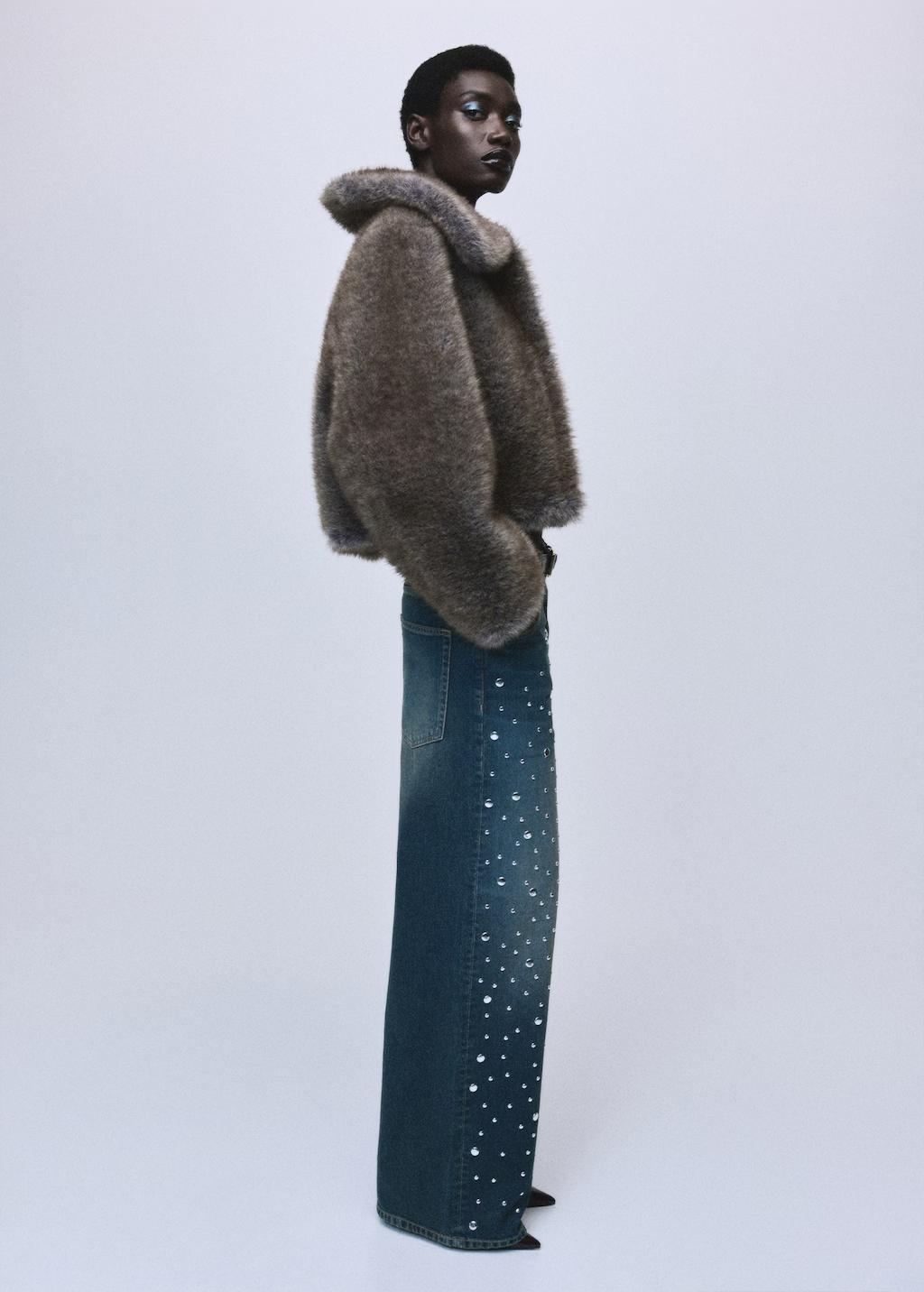 Tejido de algodón estilo tejano vaquero. Diseño largo. Diseño recto. Adorno de tachuelas. Tiro medio. Trabillas. Cinco bolsillos. Cierre de botón y cremallera. Esta prenda pertenece a nuestra colección de fiesta y evento, diseñada para elevar tus looks en ocasiones especiales
