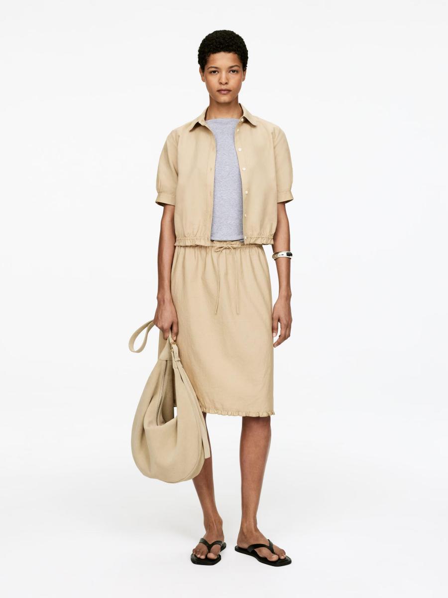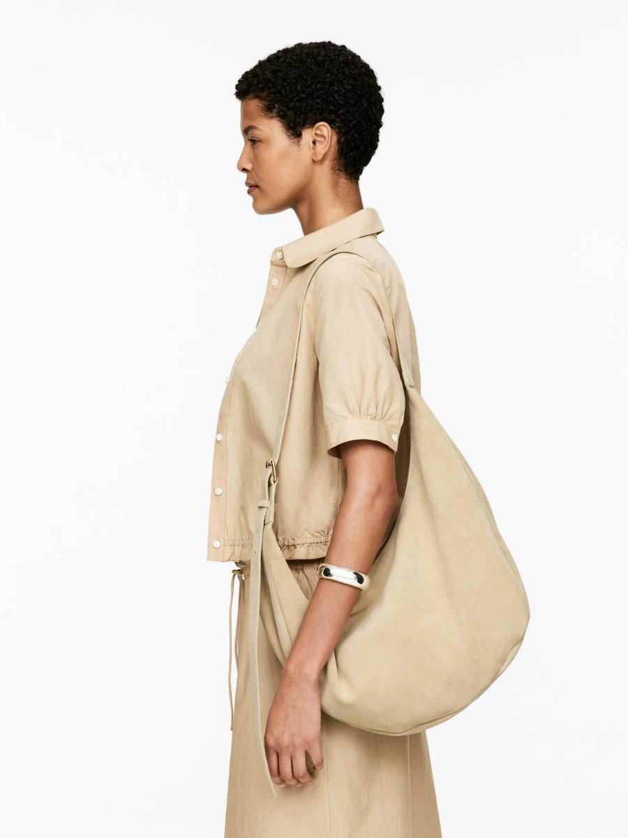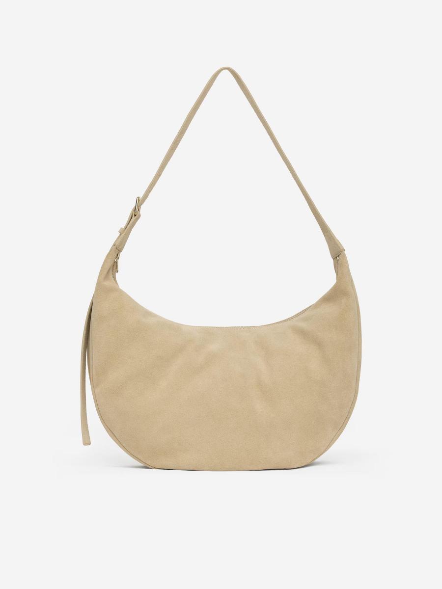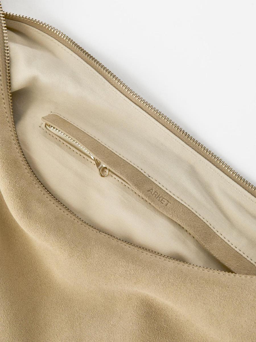 Curved suede bag in a versatile design that can be worn on the shoulder or as a crossbody. Features an adjustable shoulder strap, gold-toned hardware, and an internal zipped pocket. Dimensions 45 cm x 27 cm.ARKET/Women's clothes/Women's bags