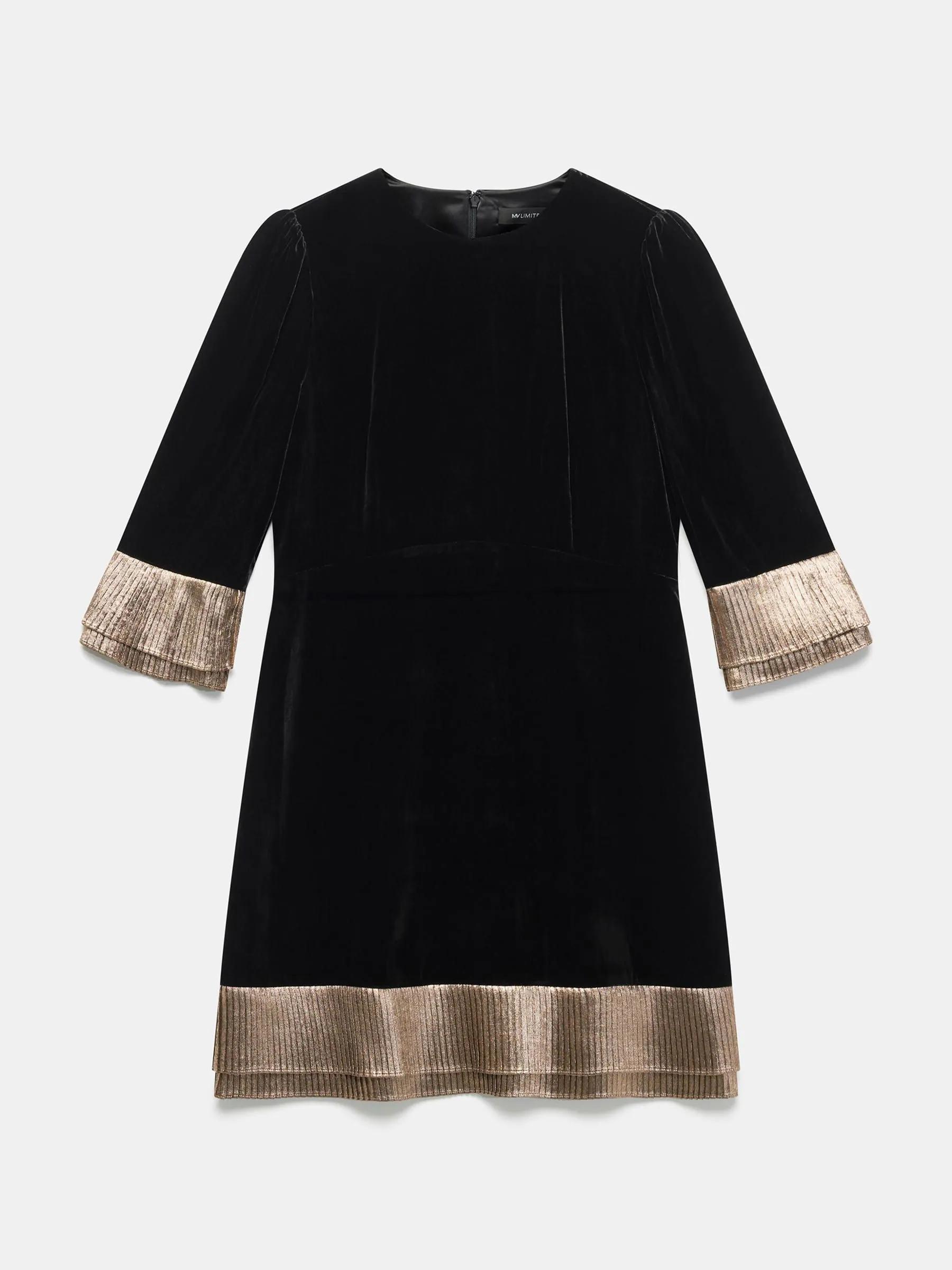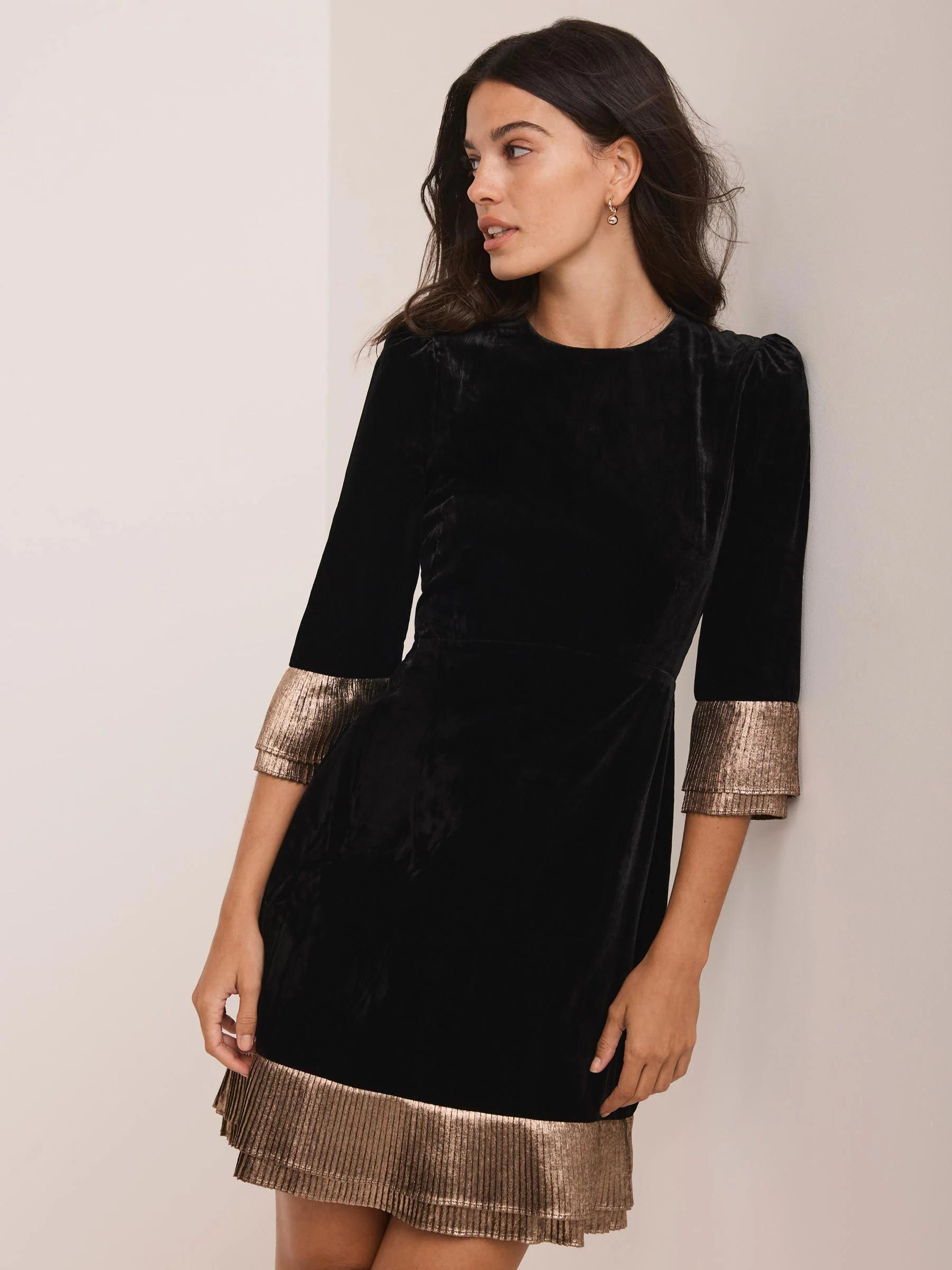 Mint Velvet Black Velvet Frill Detail Mini Dress