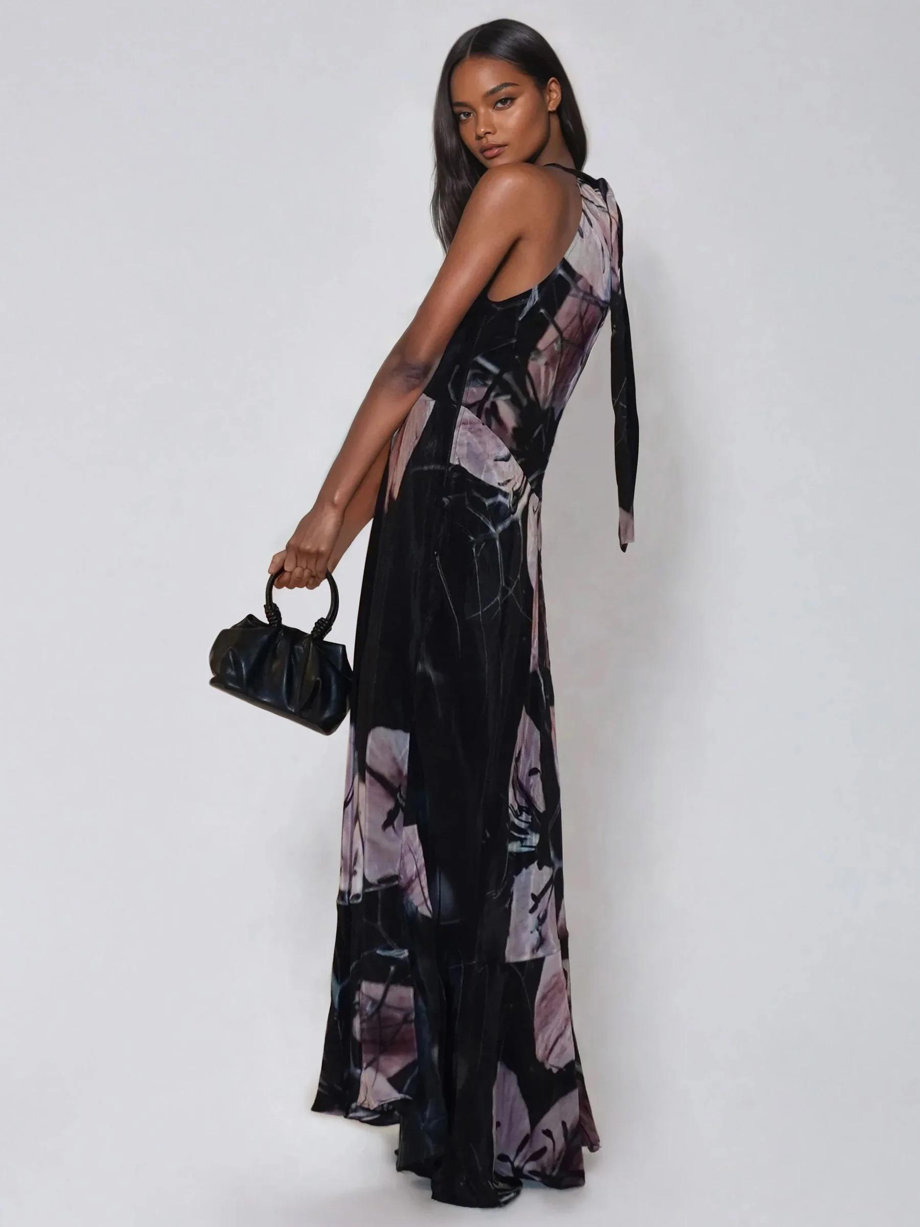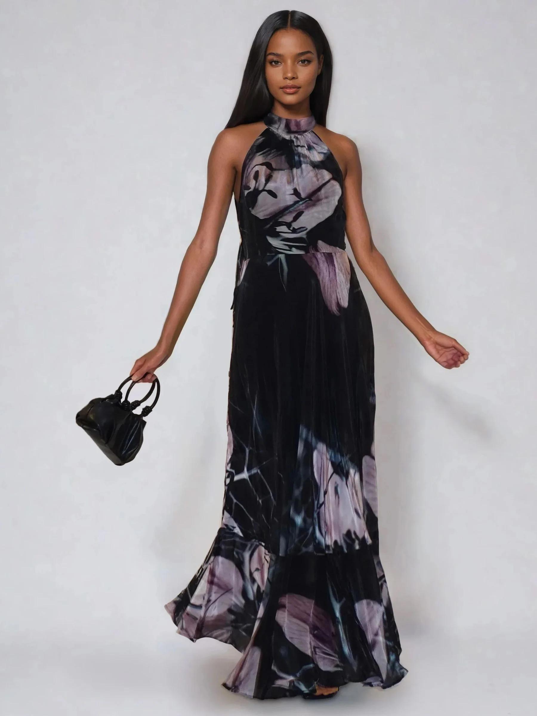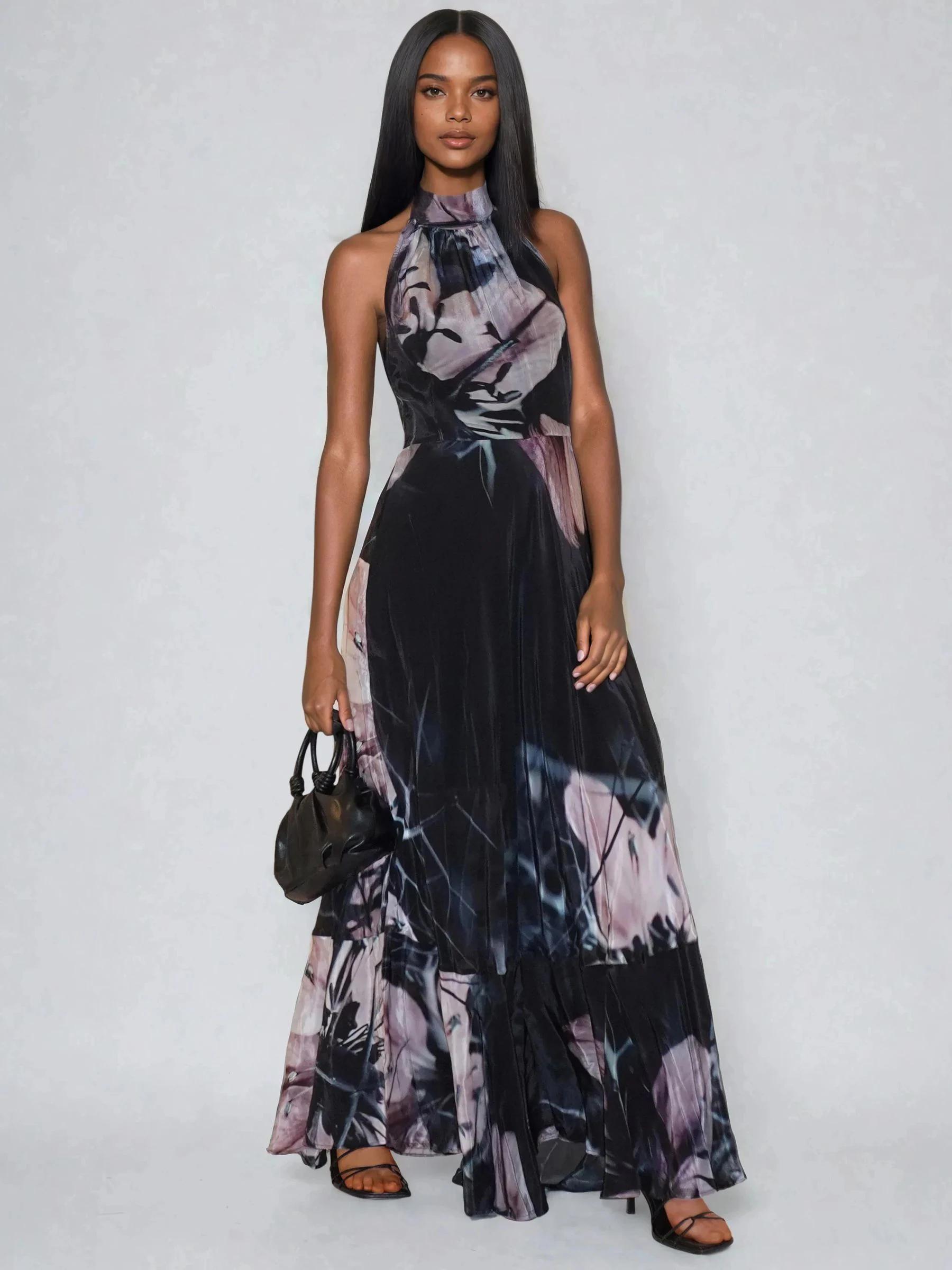 Religion Black Florence Halterneck Maxi Dress With Sash Detail In Dark Floral